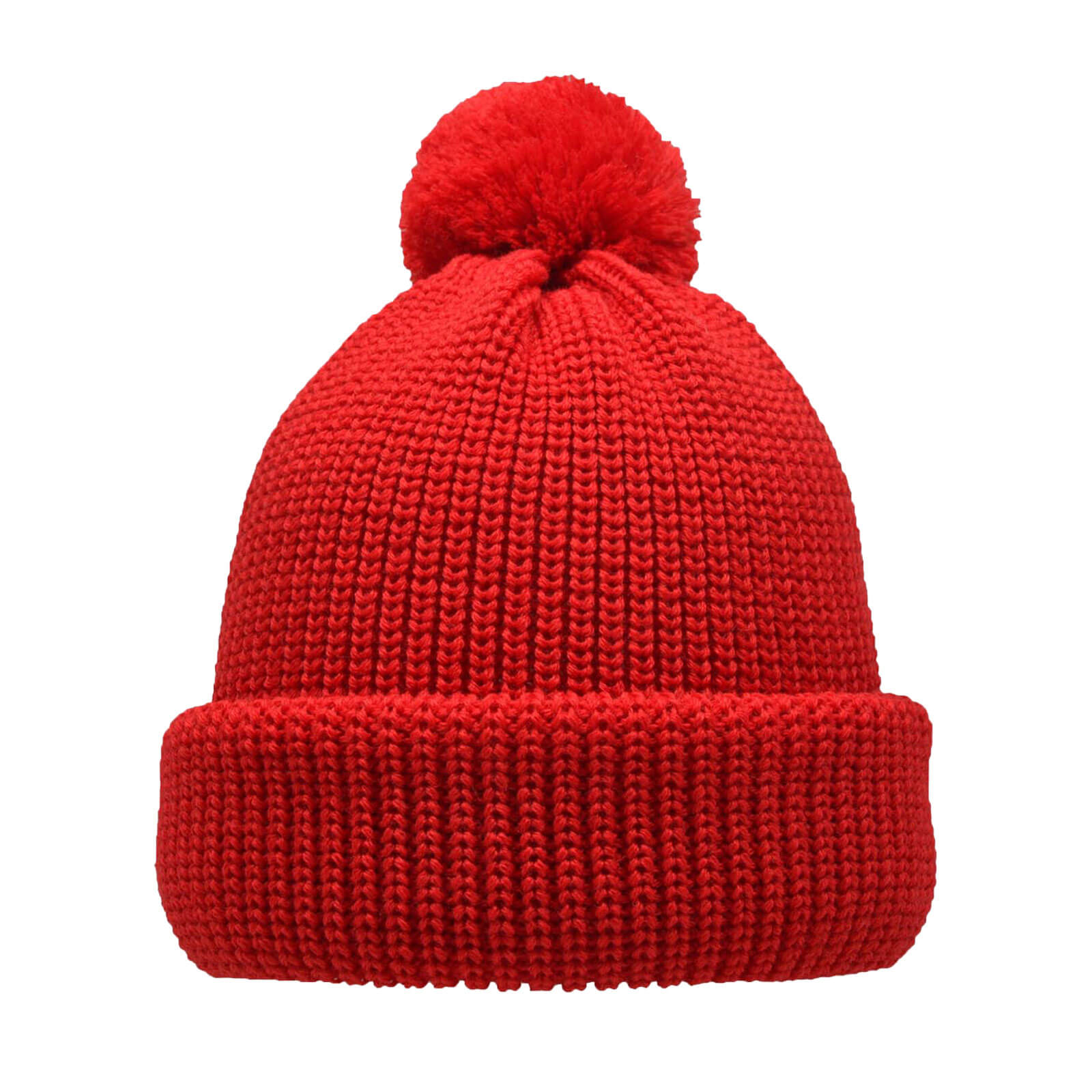 FRIESEN Friesennerz Unisex Pudelmütze "Skat mit dem Klabautermann" aus 100% Schurwolle - Wollmütze Strickmütze für Damen und Herren in Rot