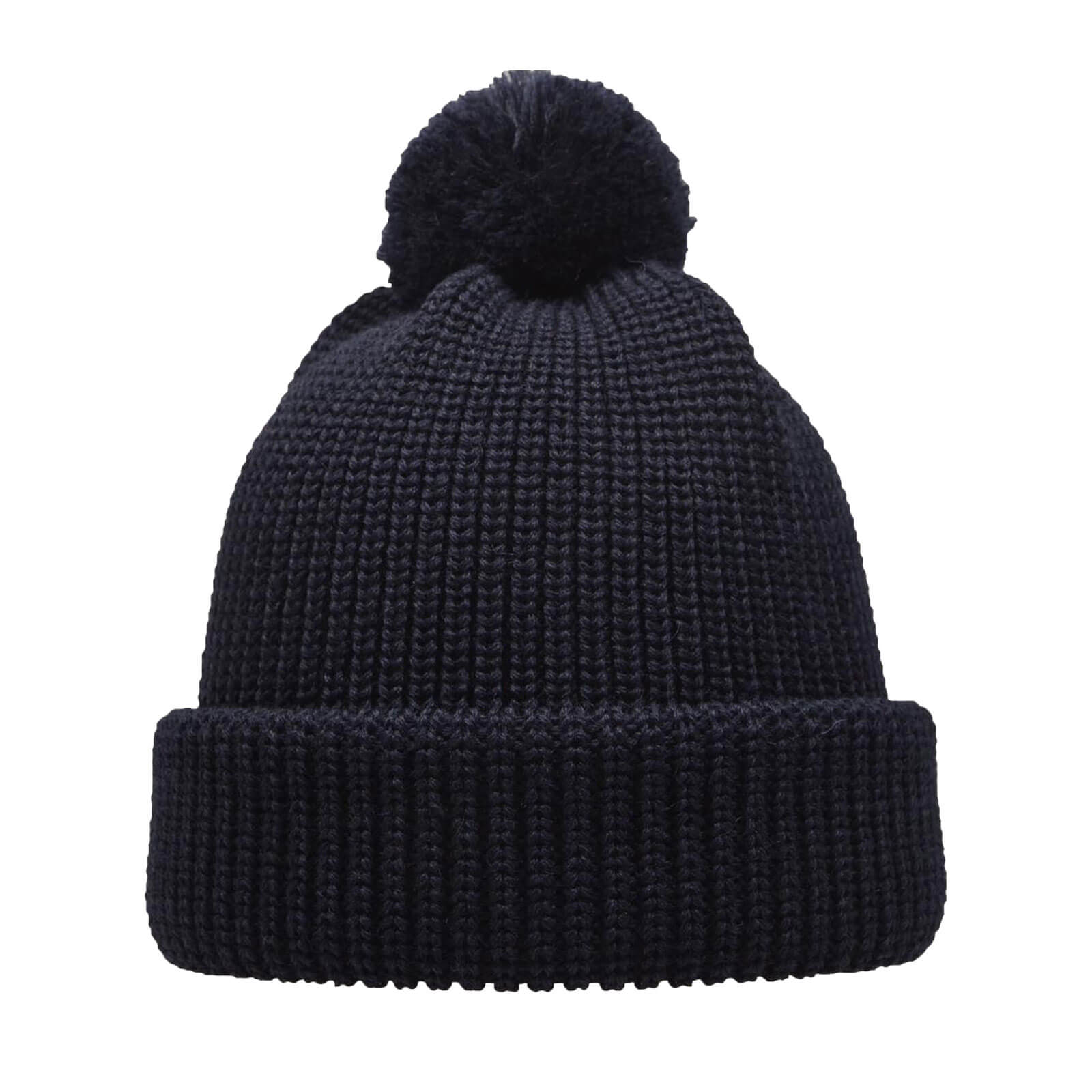 FRIESEN Friesennerz Unisex Pudelmütze "Skat mit dem Klabautermann" aus 100% Schurwolle - Wollmütze Strickmütze für Damen und Herren in Marine Blau
