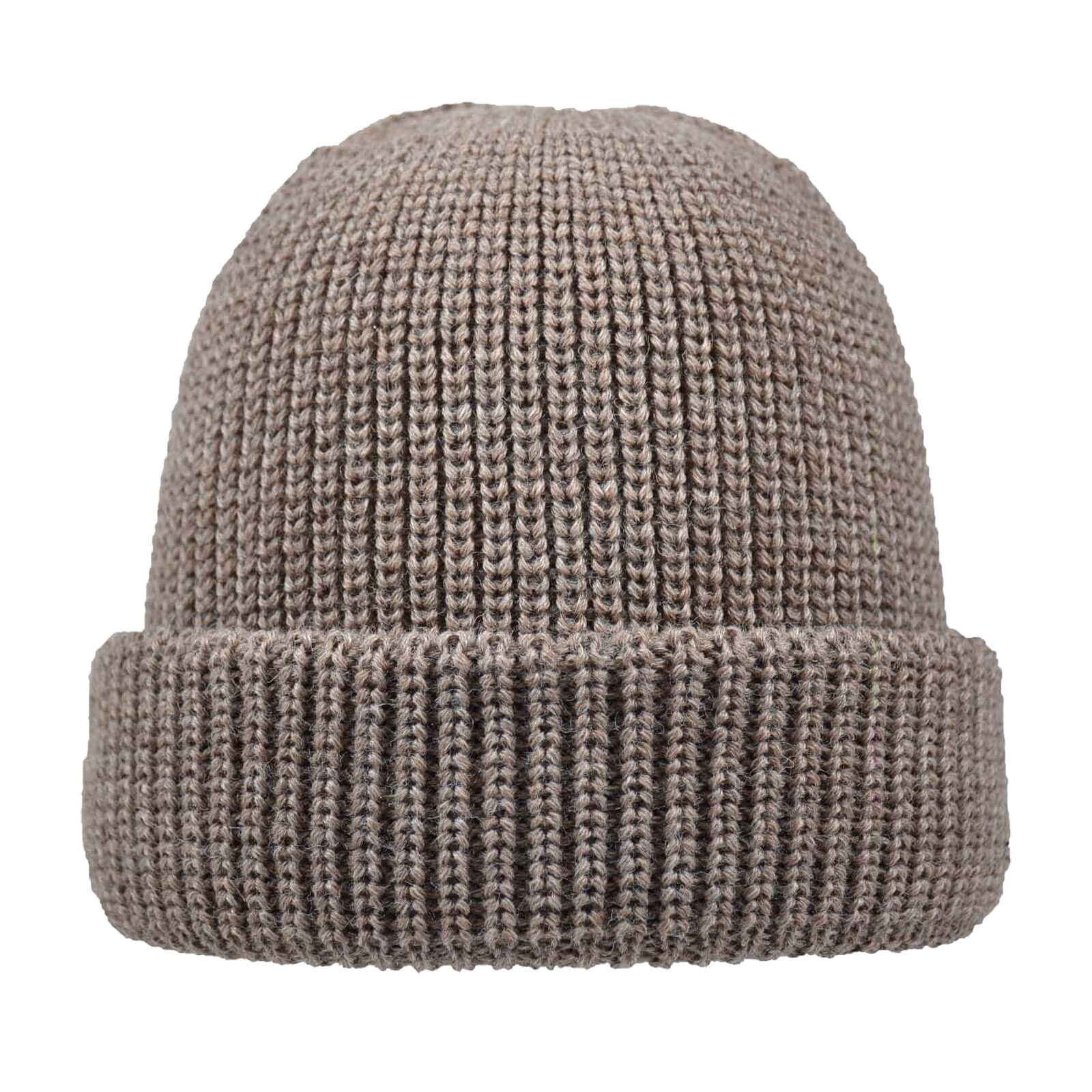 tomBrook Unisex Parkermütze aus 100% Schurwolle - Klassische Strickmütze Wintermütze mit Umschlag in Taupe