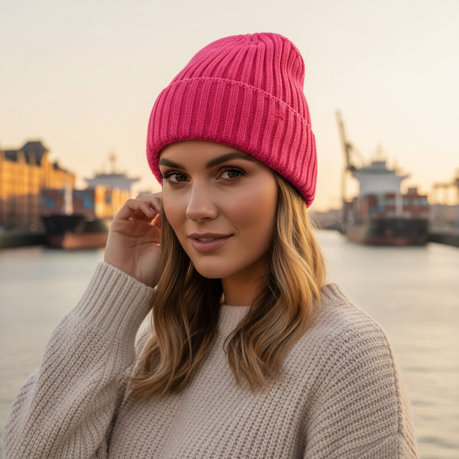 - Unisex Strickmütze mit Umschlag – für Damen und Herren