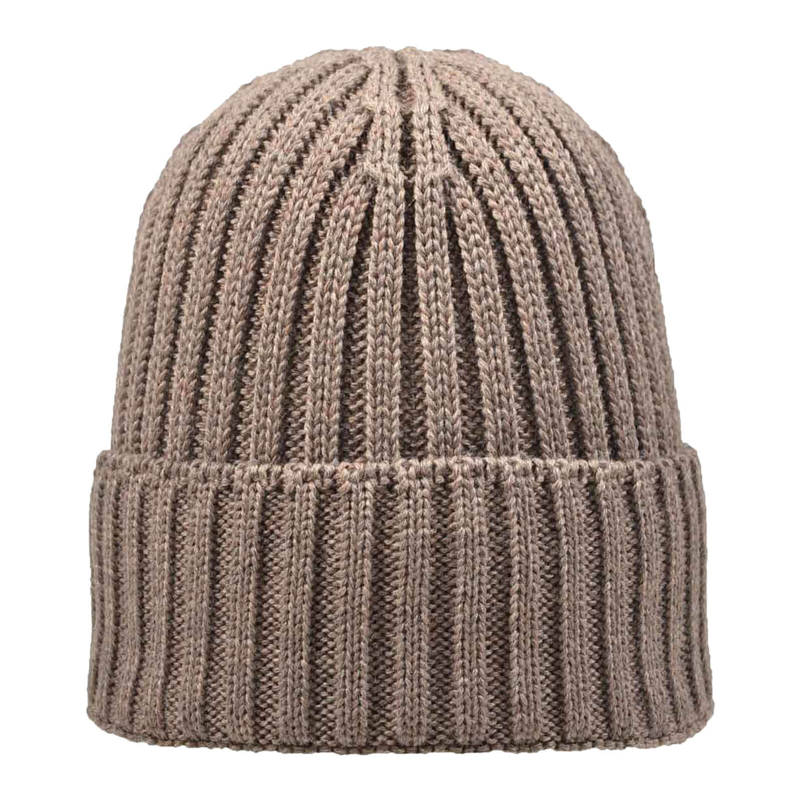 tomBrook Unisex Strickmütze mit Umschlag aus Schurwolle mit Innen-Fleece-Fütterung - Wollmütze Wintermütze für Sie und Ihn in Taupe