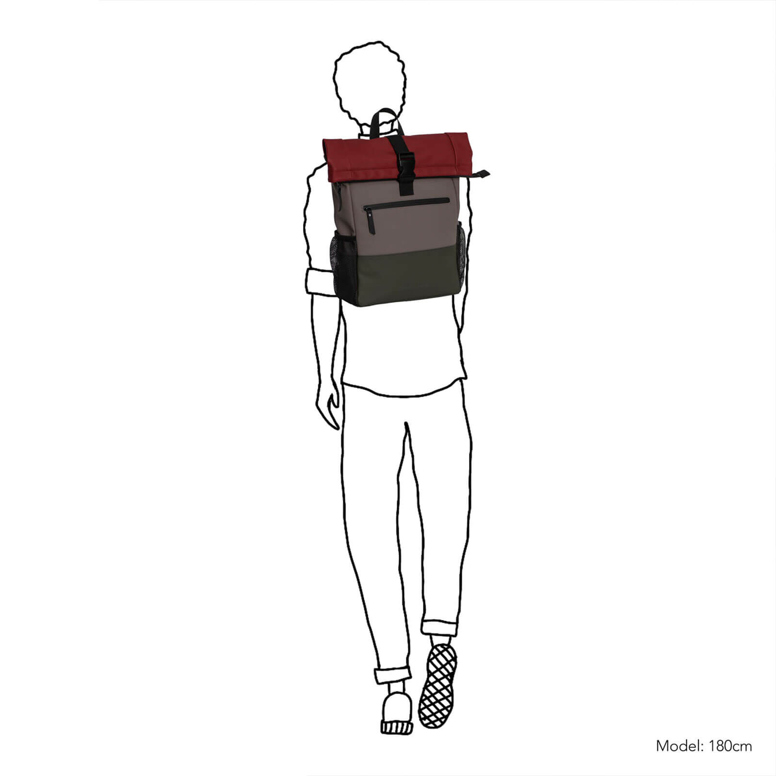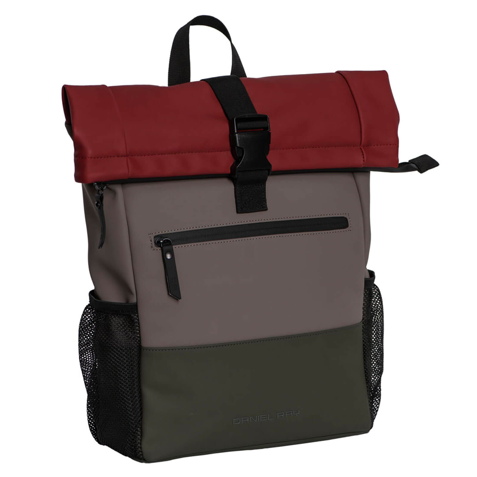 Daniel Ray Rolltop-Rucksack Portland mit Laptop-Fach - Modischer Rucksack mit Rolltop-Verschluss in Burgunderrot-Taupe-Waldgrün