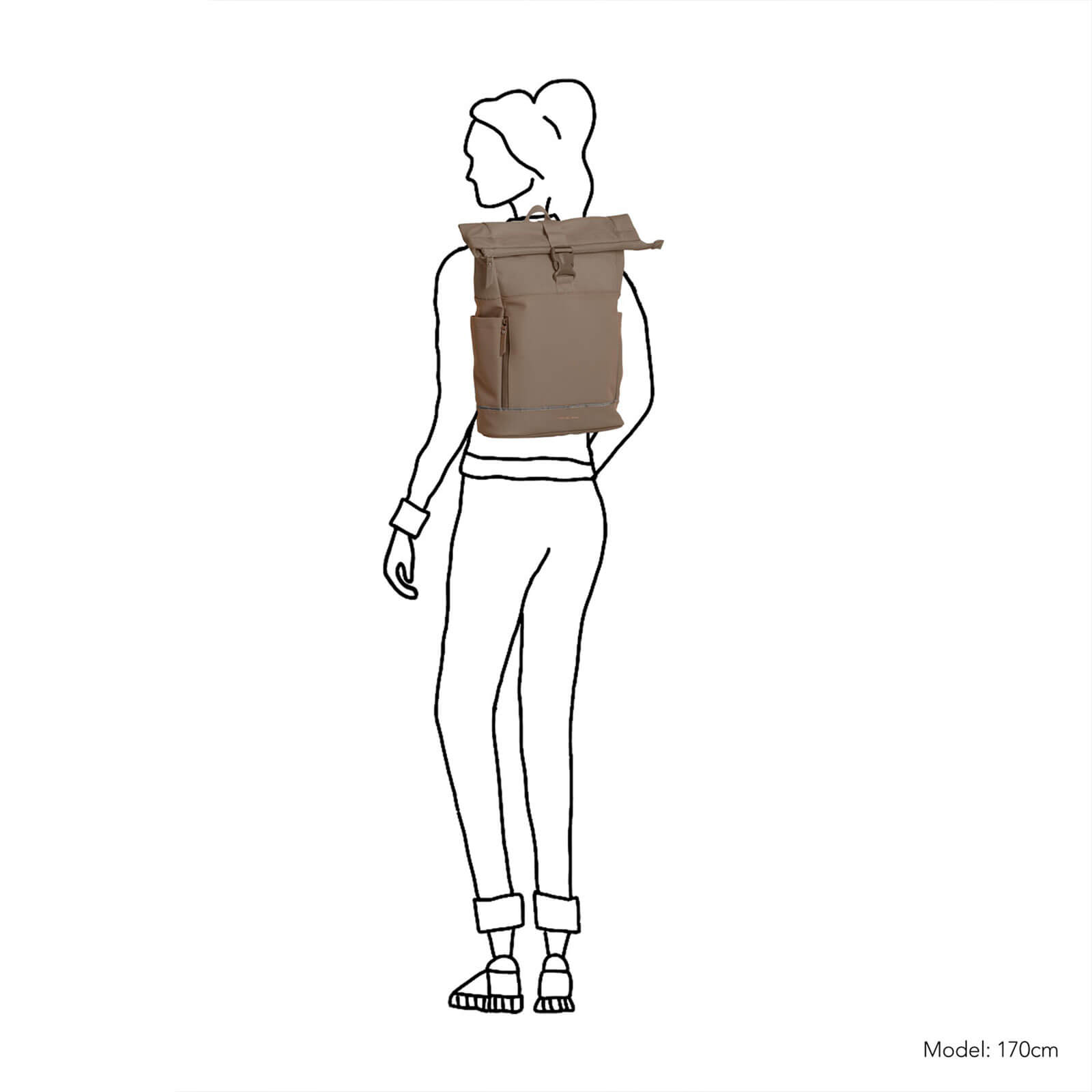 Das Hauptfach ist mit einem Reißverschluss sowie einem praktischen und sicheren Rolltop-Verschluss ausgestattet, der zusätzlichen Schutz und einen modernen Look bietet. Verstellbare und gepolsterte Schulterriemen zusammen mit einem gepolsterten Rückenbereich sorgen für maximalen Tragekomfort, auch wenn der Rucksack den ganzen Tag über getragen wird. Eine seitliche Reißverschlusstasche für schnellen Zugriff und zwei offene Seitentaschen bieten flexible Aufbewahrungsmöglichkeiten für Trinkflaschen oder Schirme. Eine Trageschlaufe oben erlaubt schnelles Greifen und Aufhängen. Ein gesichertes Laptopfach bietet Platz für Laptops bis zu 15,6 Zoll, ideal für Beruf, Schule oder Universität. Mit einem Volumen von etwa 18 Litern und Außenmaßen von ca. 40x28x12 cm, eignet sich der Rucksack ausgezeichnet für den täglichen Gebrauch, kurze Reisen oder als stilvolle Bürotasche.