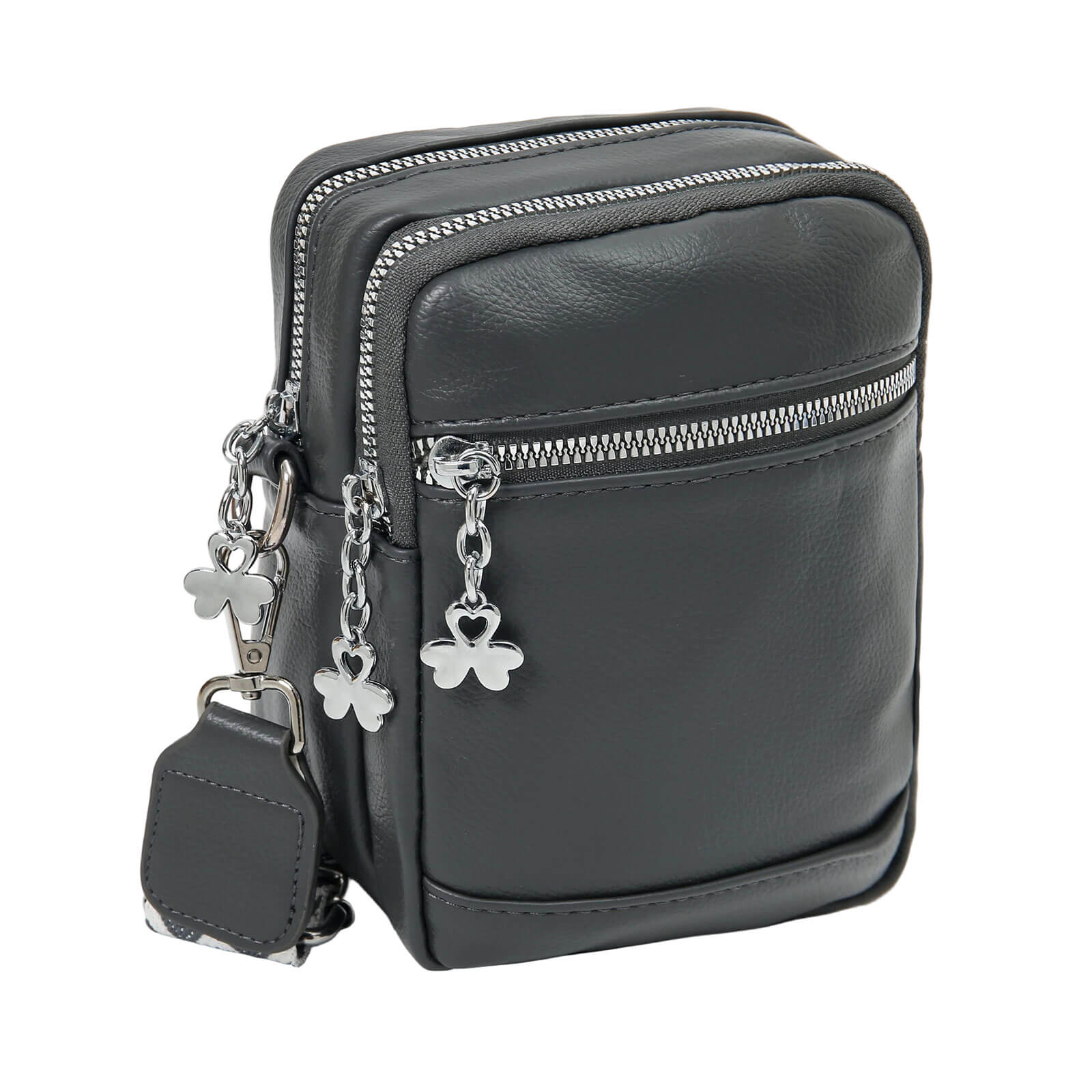 Leoberg Multi Bag Umhängetasche mit dekorativen Anhänger - Tasche in Grau-315204