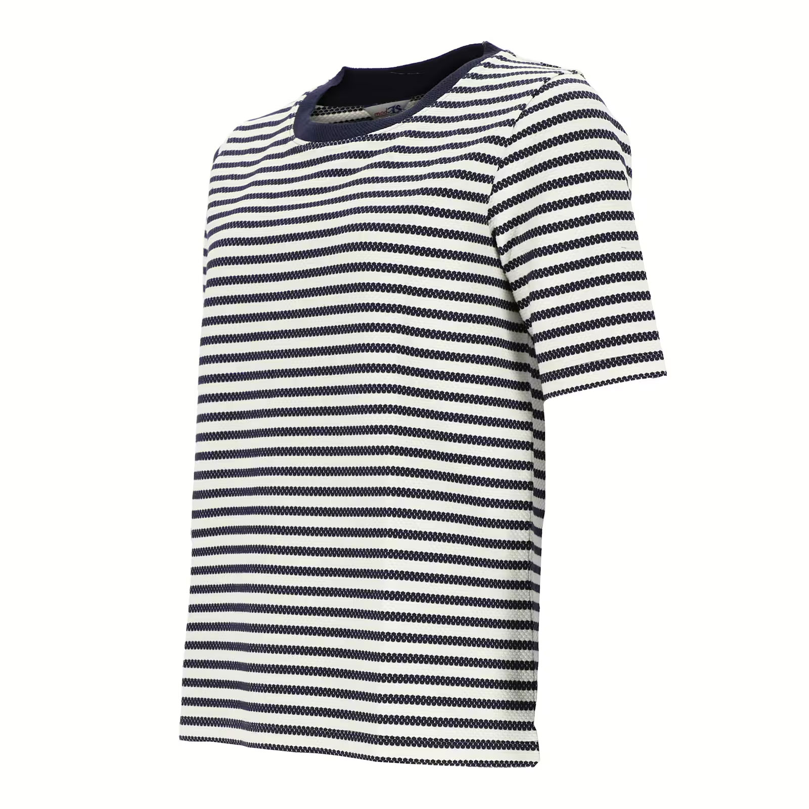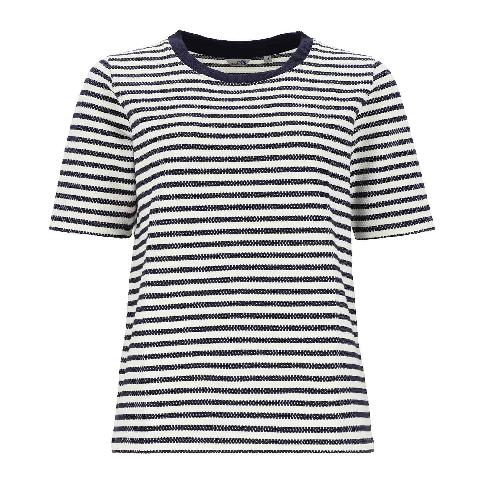 modAS Damen Strick-T-Shirt im Jacquard-Stil mit Streifen - Gestreiftes Kurzarm-Shirt in Marine-Weiß Größe S
