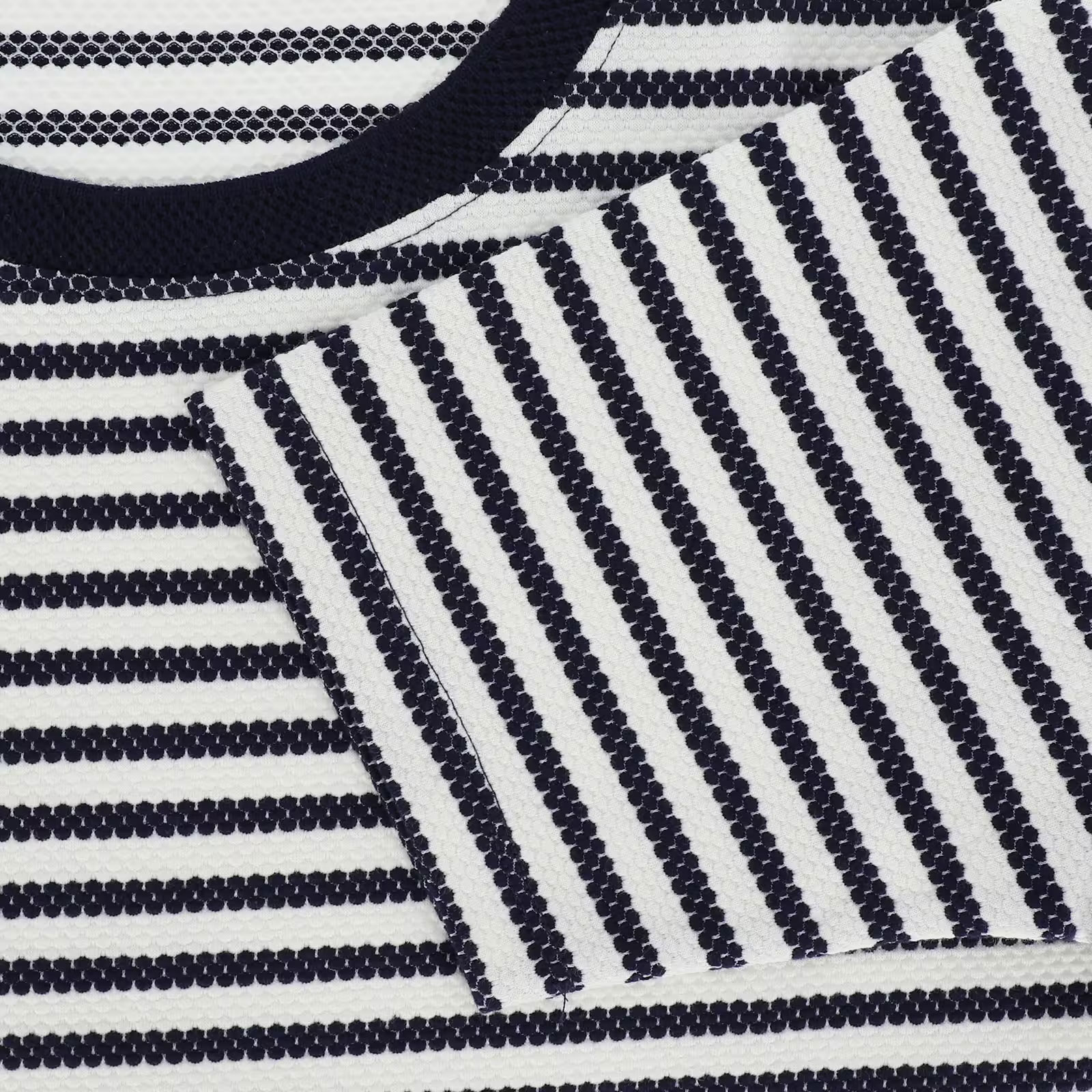 Der hochwertige Jacquard-Strick mit feiner Struktur sorgt für eine stilvolle Optik und eine hochwertige Haptik. Gleichzeitig bleibt das Material angenehm leicht und blickdicht – ideal für warme Tage und vielseitige Sommeroutfits. Mit seinem modernen Streifen-Design wird das Damen-Shirt zu einem zeitlosen Lieblingsstück, das sich mühelos in verschiedene Looks integrieren lässt – von casual bis elegant. Das luftige Jacquard-Strickdesign verleiht dem Shirt eine feine, strukturierte Oberfläche und sorgt gleichzeitig für eine angenehme Atmungsaktivität. Mit einem Materialgewicht von ca. 210 g/m² bietet das Shirt eine perfekte Balance aus Leichtigkeit und Stabilität. Der hochwertige Materialmix sorgt für ein besonders angenehmes Tragegefühl und macht das Shirt zu einem komfortablen Begleiter für den ganzen Tag. Der gerade Schnitt verleiht dem Kurzarm-Shirt eine entspannte, klassische Passform und sorgt für maximale Bewegungsfreiheit. Dadurch lässt sich das Damen Strickshirt perfekt zu Jeans, Stoffhosen, Röcken oder Shorts kombinieren. Ob als Sommer-Shirt, Freizeitshirt oder stilvolles Basic für den Alltag – dieses gestreifte Damen T-Shirt passt zu vielen Anlässen und überzeugt durch seine moderne, elegante Ausstrahlung.