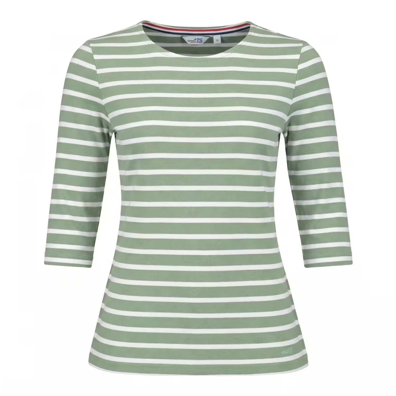 modAS Bretonisches Damenshirt mit 3/4-Arm - Streifenshirt Ringelshirt Basic Shirt Gestreift aus Baumwolle in Salbei-Weiß Größe 36