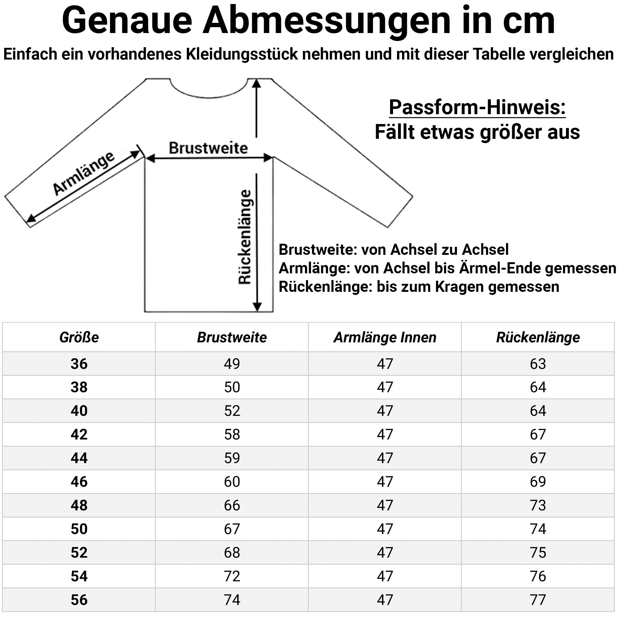 Brustweite (von Achsel zu Achsel gemessen): 49 cm