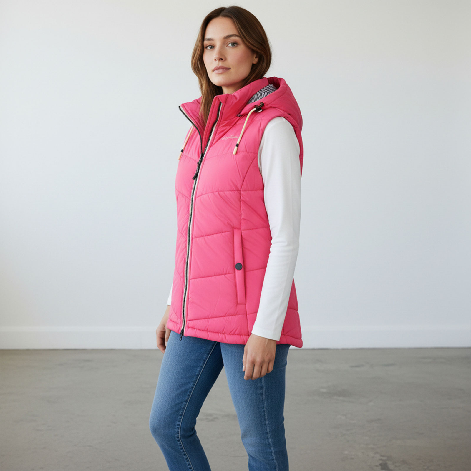 Dry Fashion Damen Steppweste Rügen mit abnehmbarer Kapuze - Leichte Weste mit taillierten Schnitt in Pink Größe 36