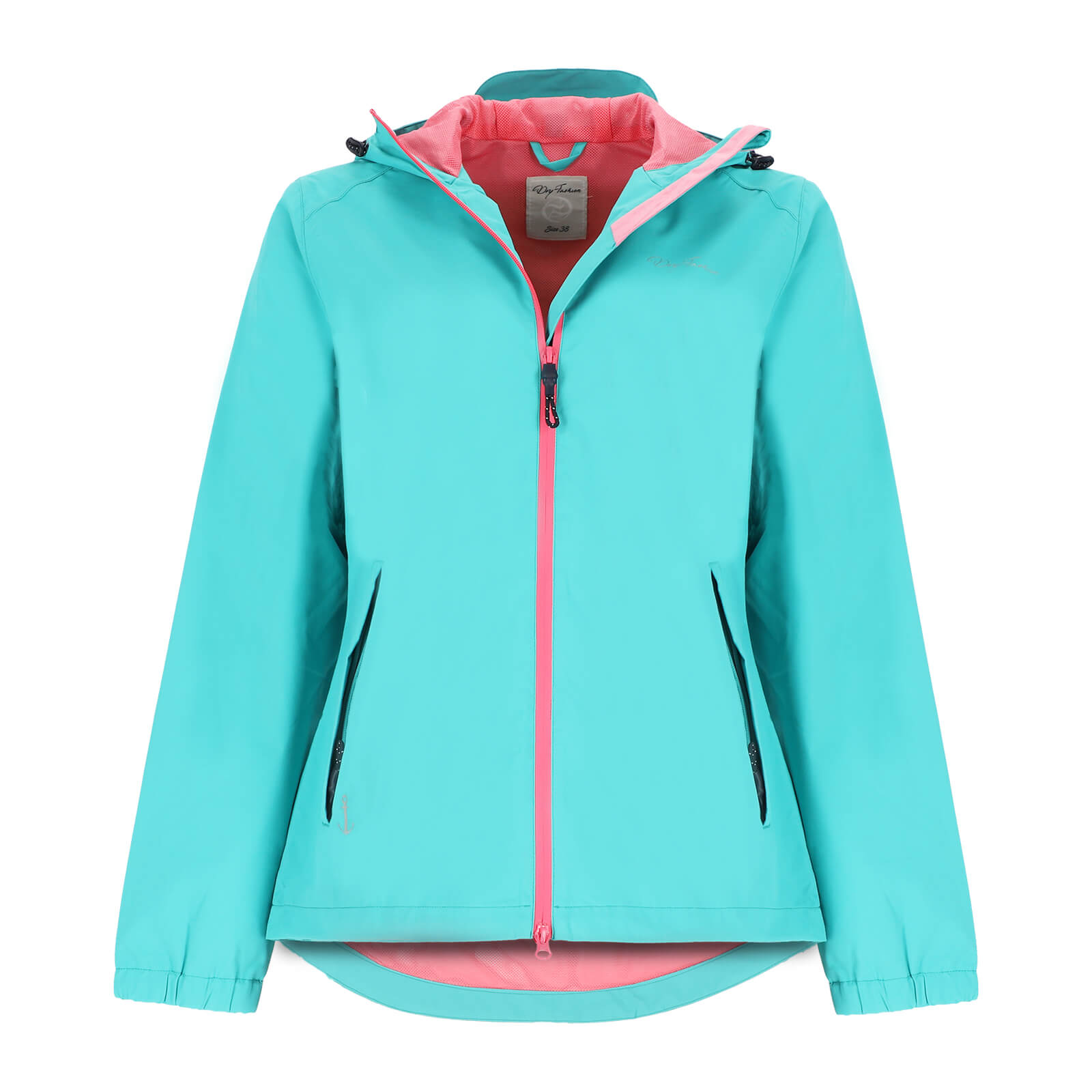 Dry Fashion Damen Funktionsjacke Spiekeroog wind- und wasserdicht - Verstaubare Outdoor-Jacke mit Kapuze in Türkis Größe 36