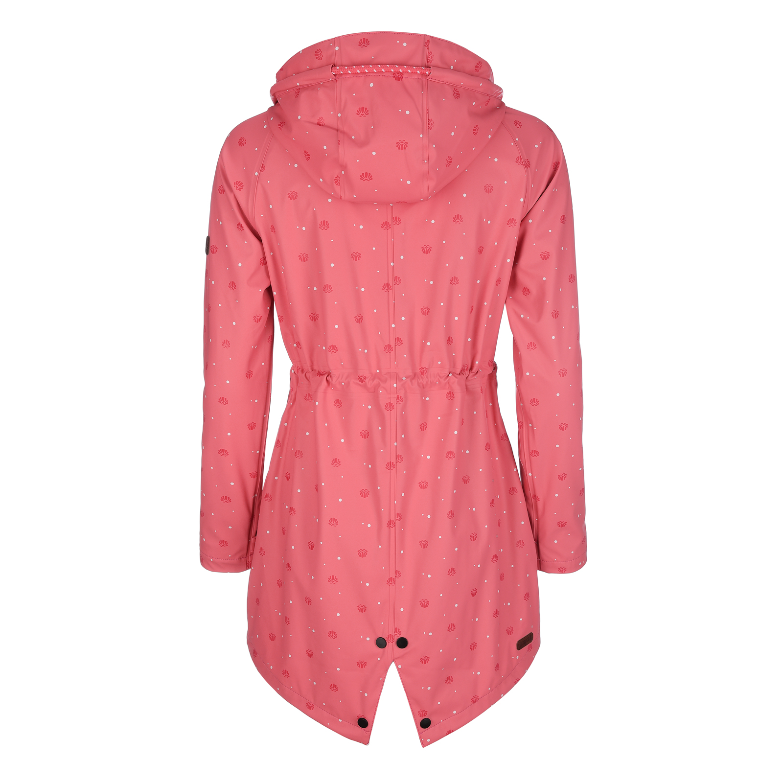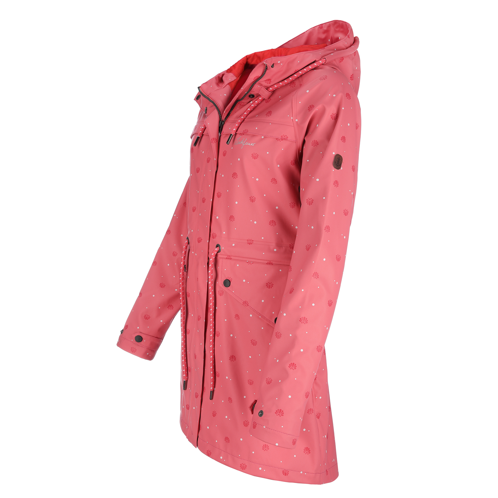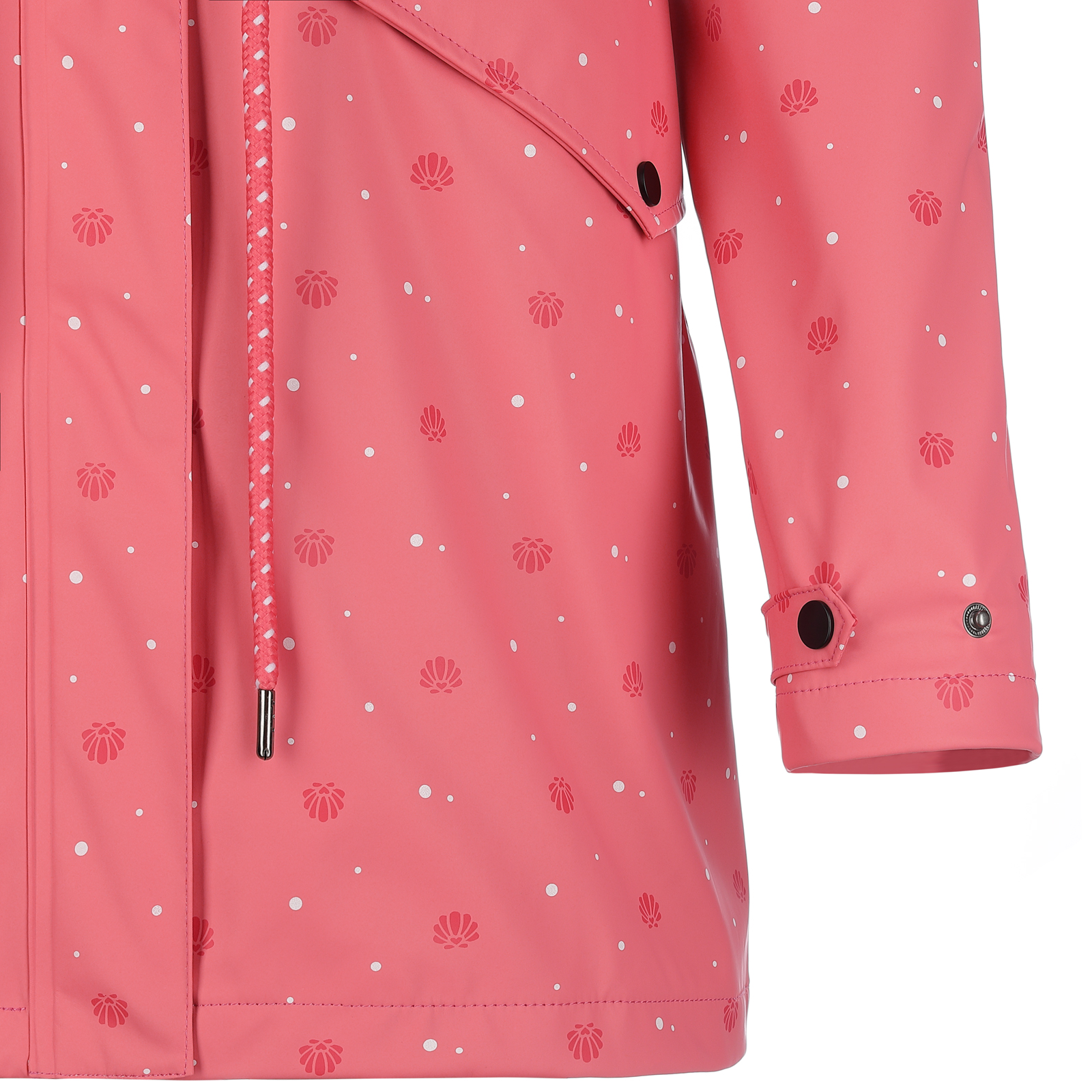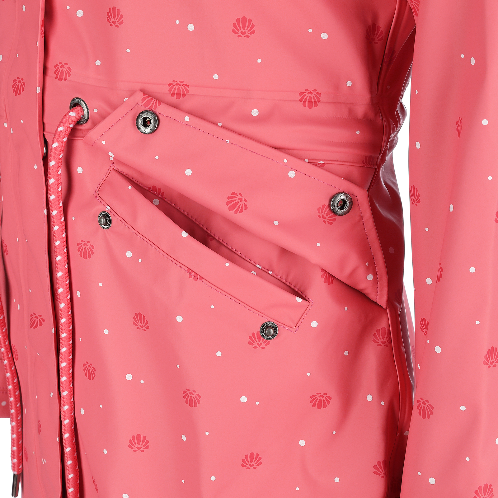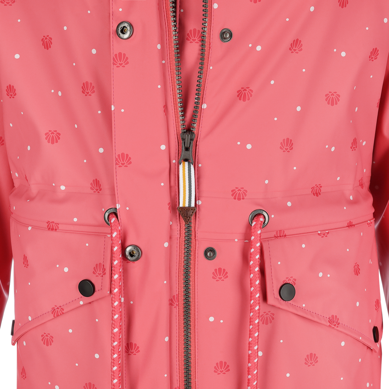 Leitfeuer Damen Regenmantel Kurzmantel mit Allover-Print Muschel – PU-Regenjacke Outdoorjacke wasserdicht winddicht in Koralle Größe 38