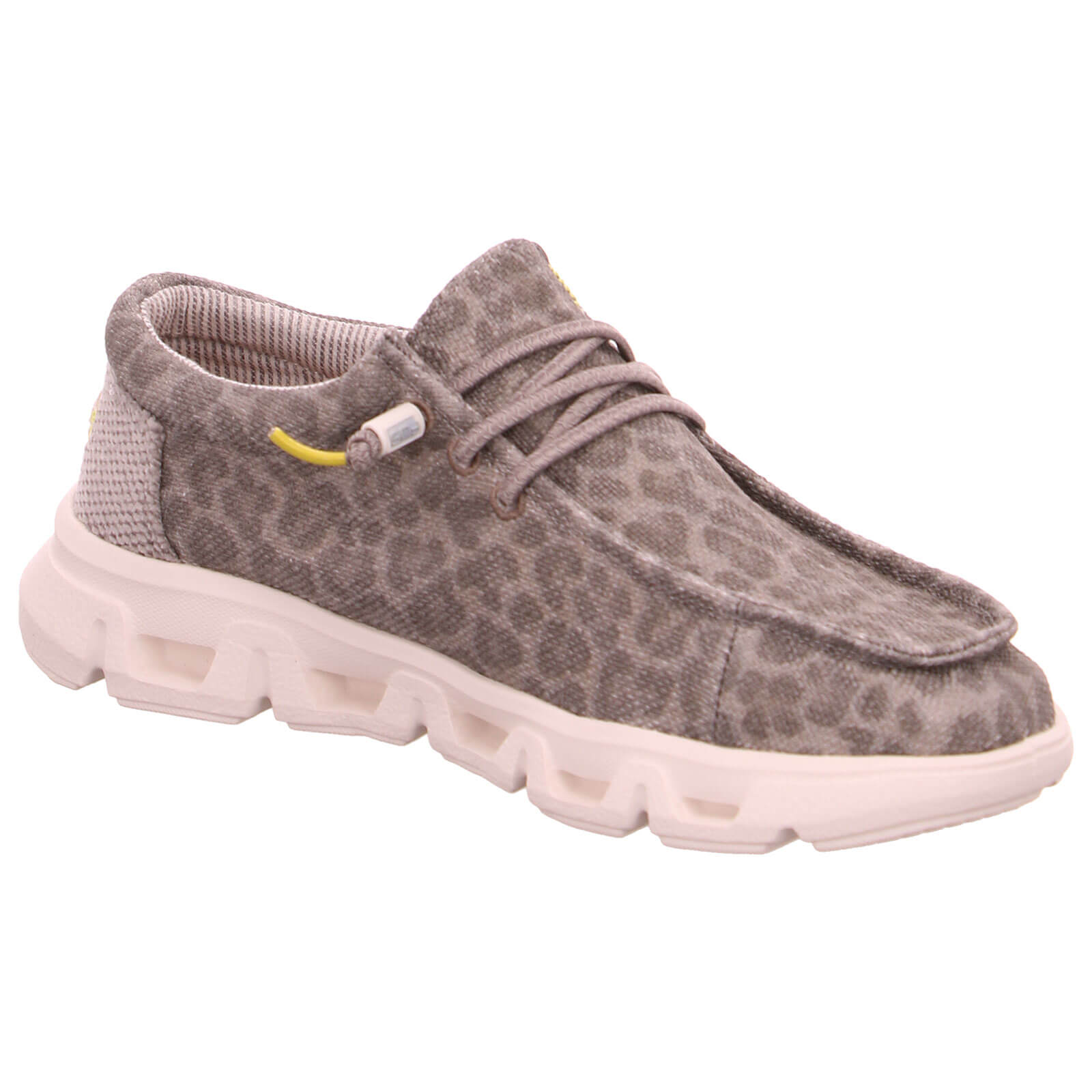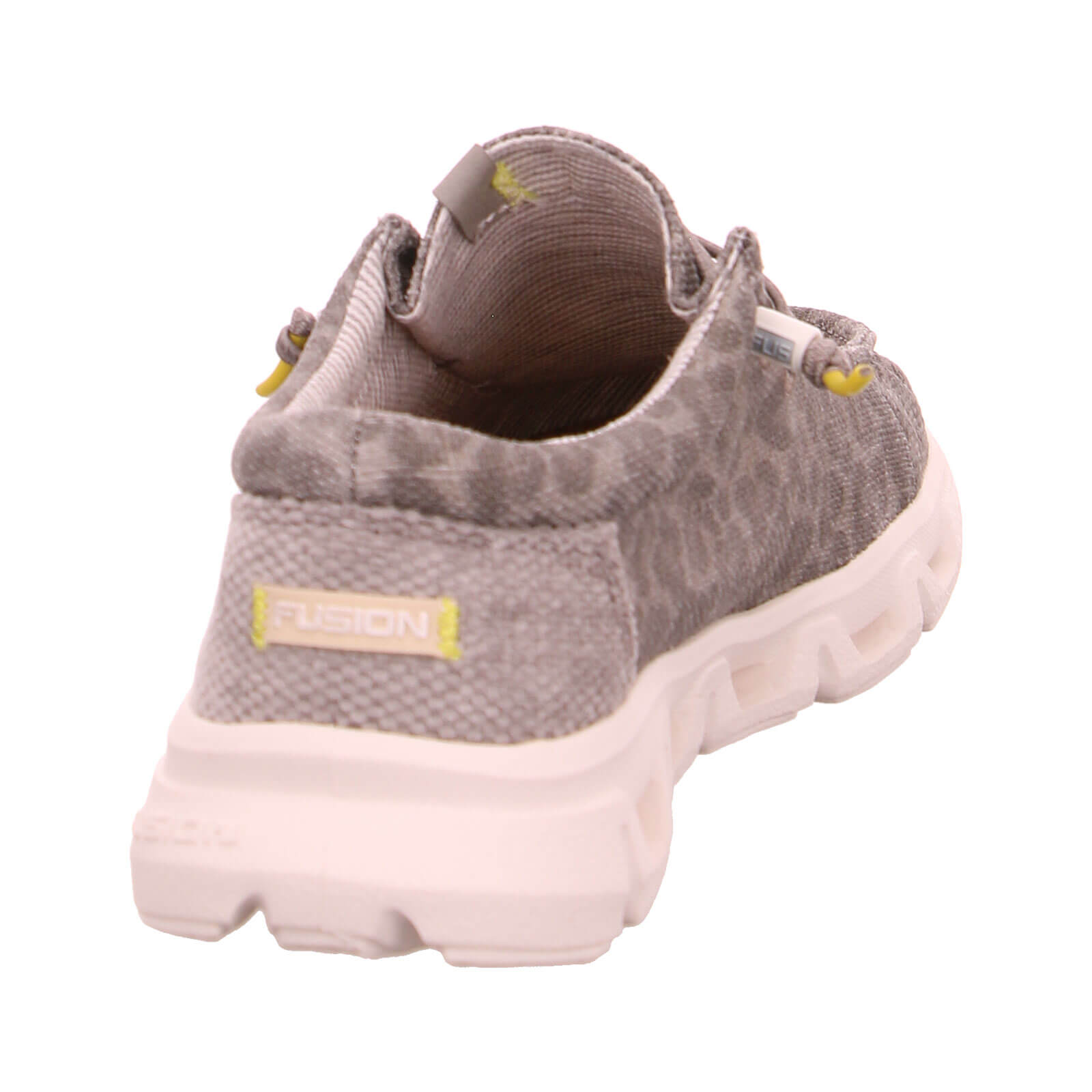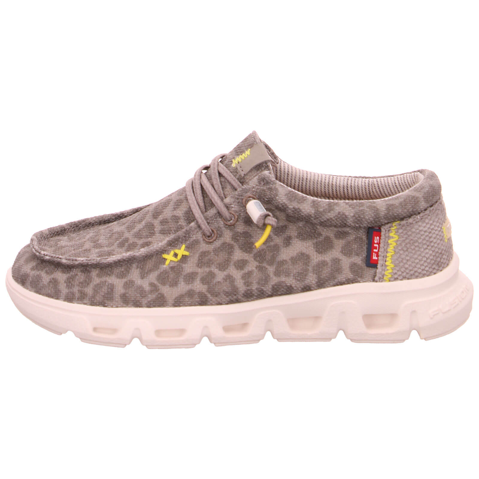 Fusion Damen Schuh Emma 3.0 in Leinenoptik mit Gummizug - Leinenschuh mit Korksohle in Washed Leo Grey Größe 37