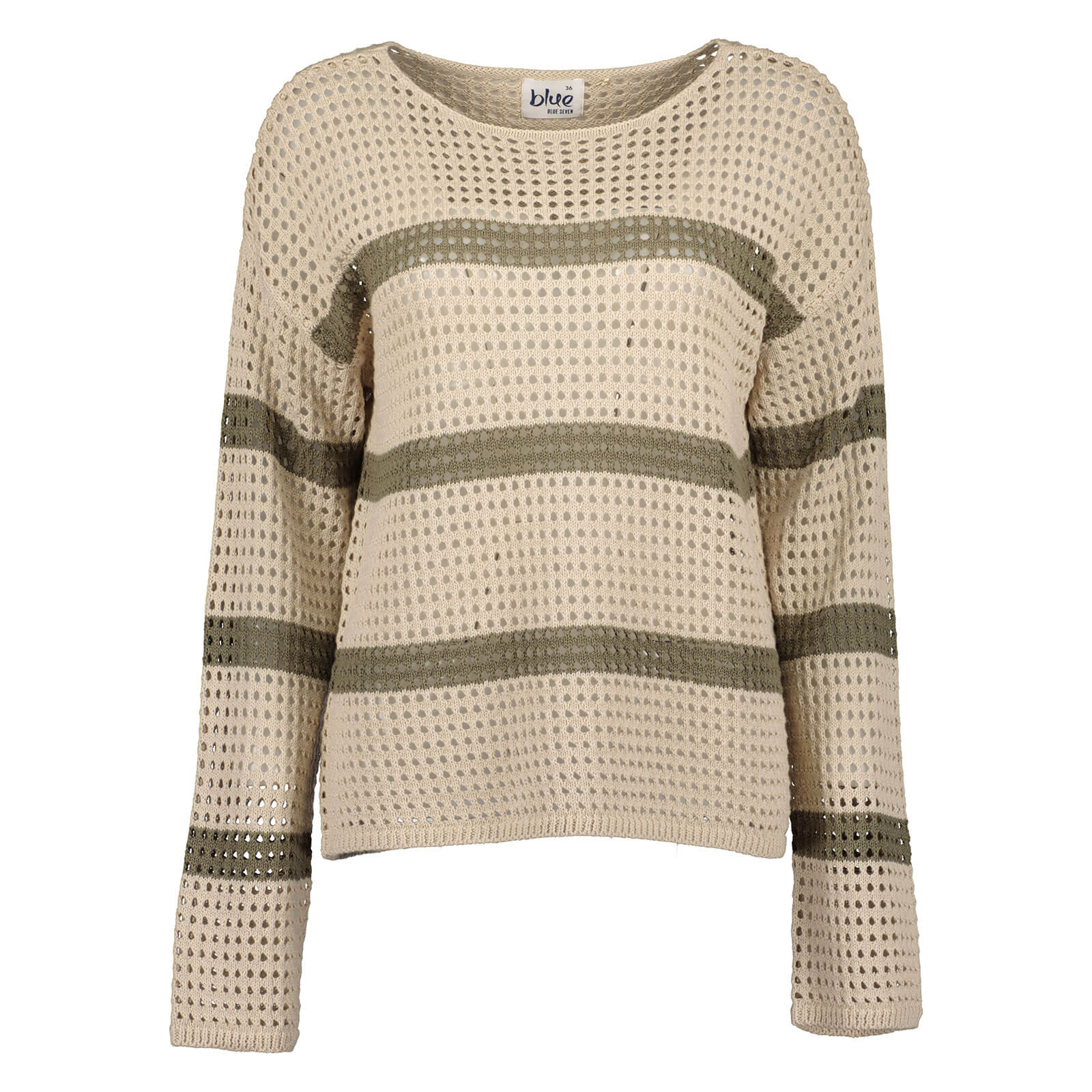 Blue Seven Damen Pullover im Loch-Design mit Streifen - Lochmuster-Pulli mit Rundhalsausschnitt