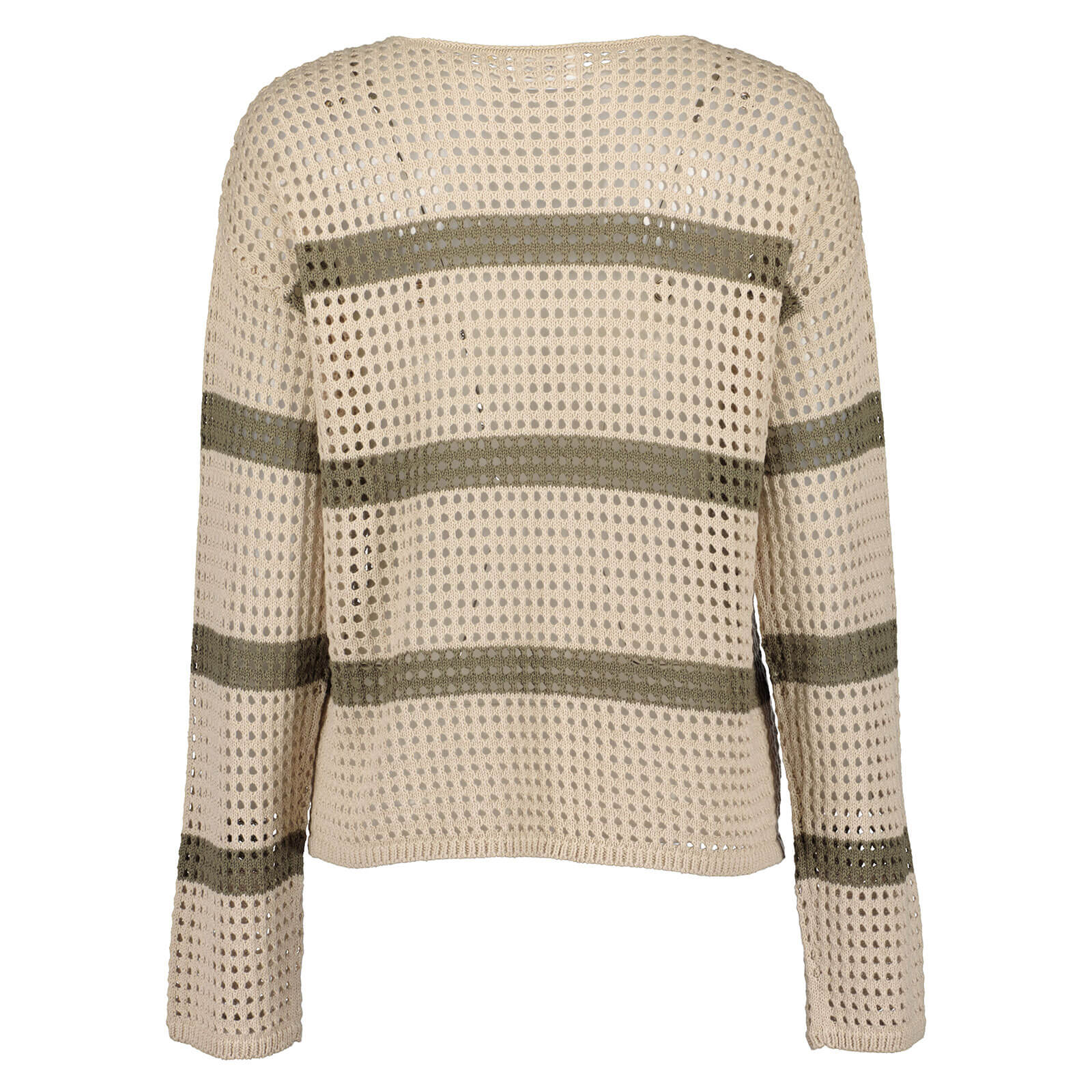 Blue Seven Damen Pullover im Loch-Design mit Streifen - Lochmuster-Pulli mit Rundhalsausschnitt in Kiesel Größe S