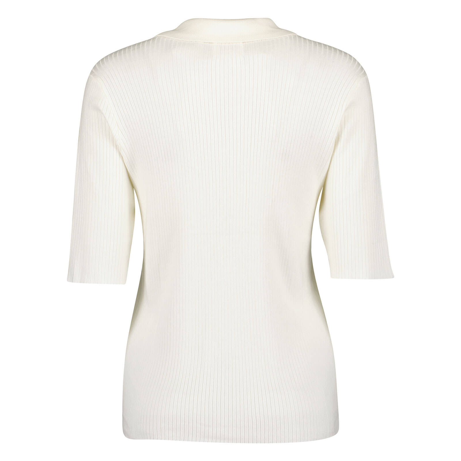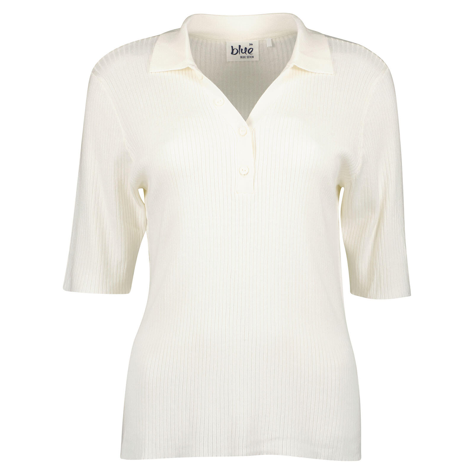 Blue Seven Damen Pullover mit offenem Polokragen - Unifarbener Pulli mit 3/4-Arm in Offwhite Größe 36