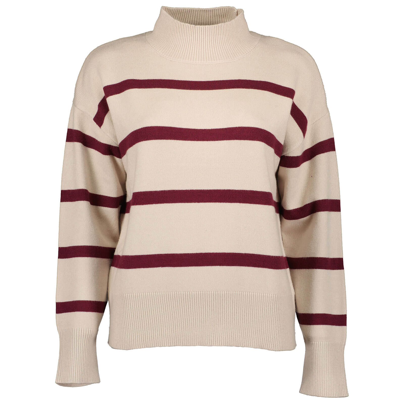 Blue Seven Damen Pullover mit Stehkragen und überschnittenen Schultern - Gestreifter Strickpullover in Kiesel Größe 36