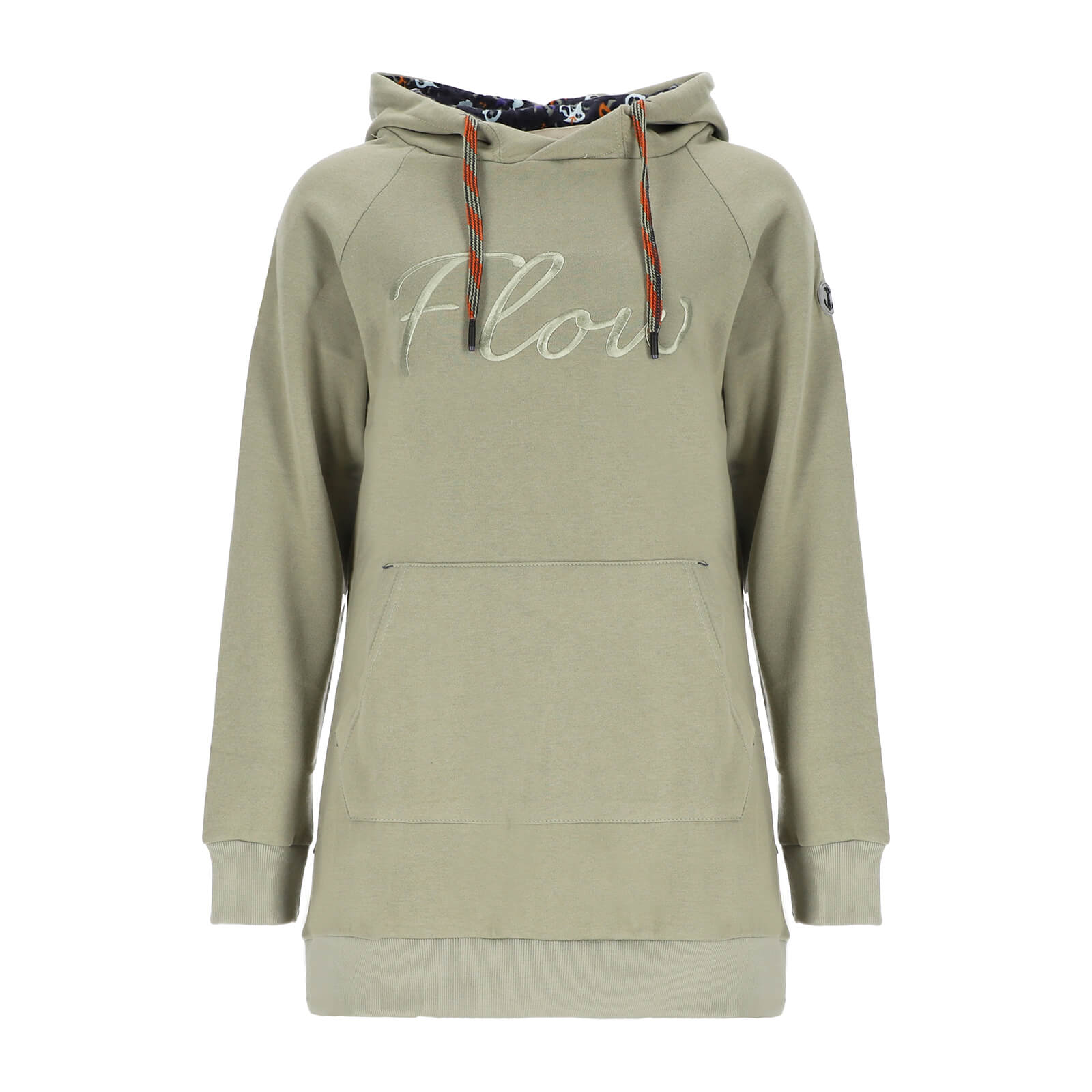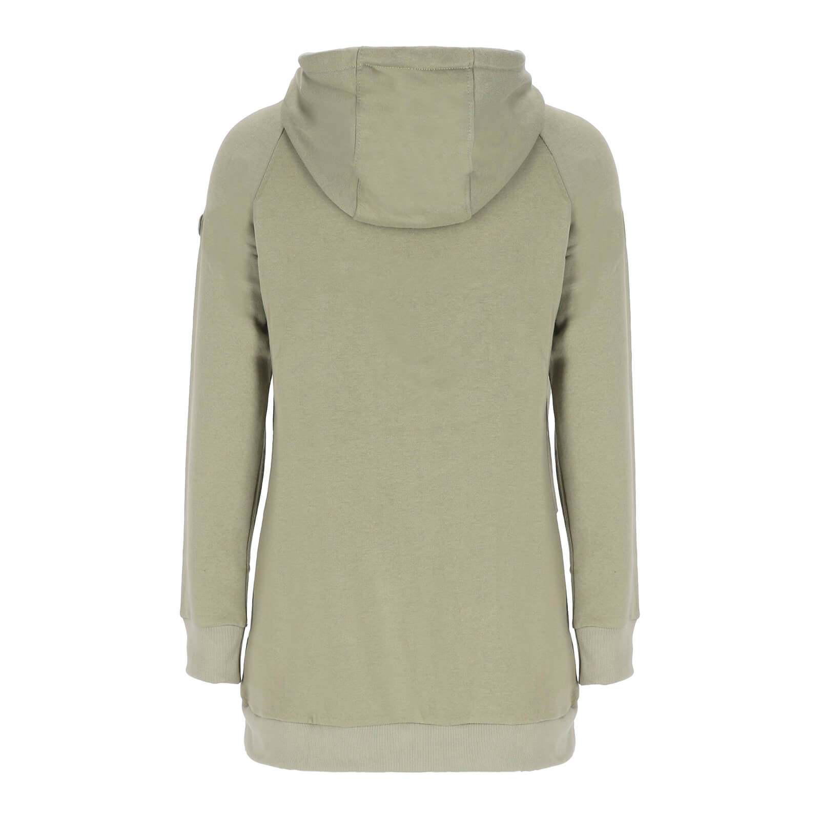 Leitfeuer Damen Scuba-Hoody Oversized in langer Passform - Kapuzenpullover mit Kängurutasche in Khaki Größe S