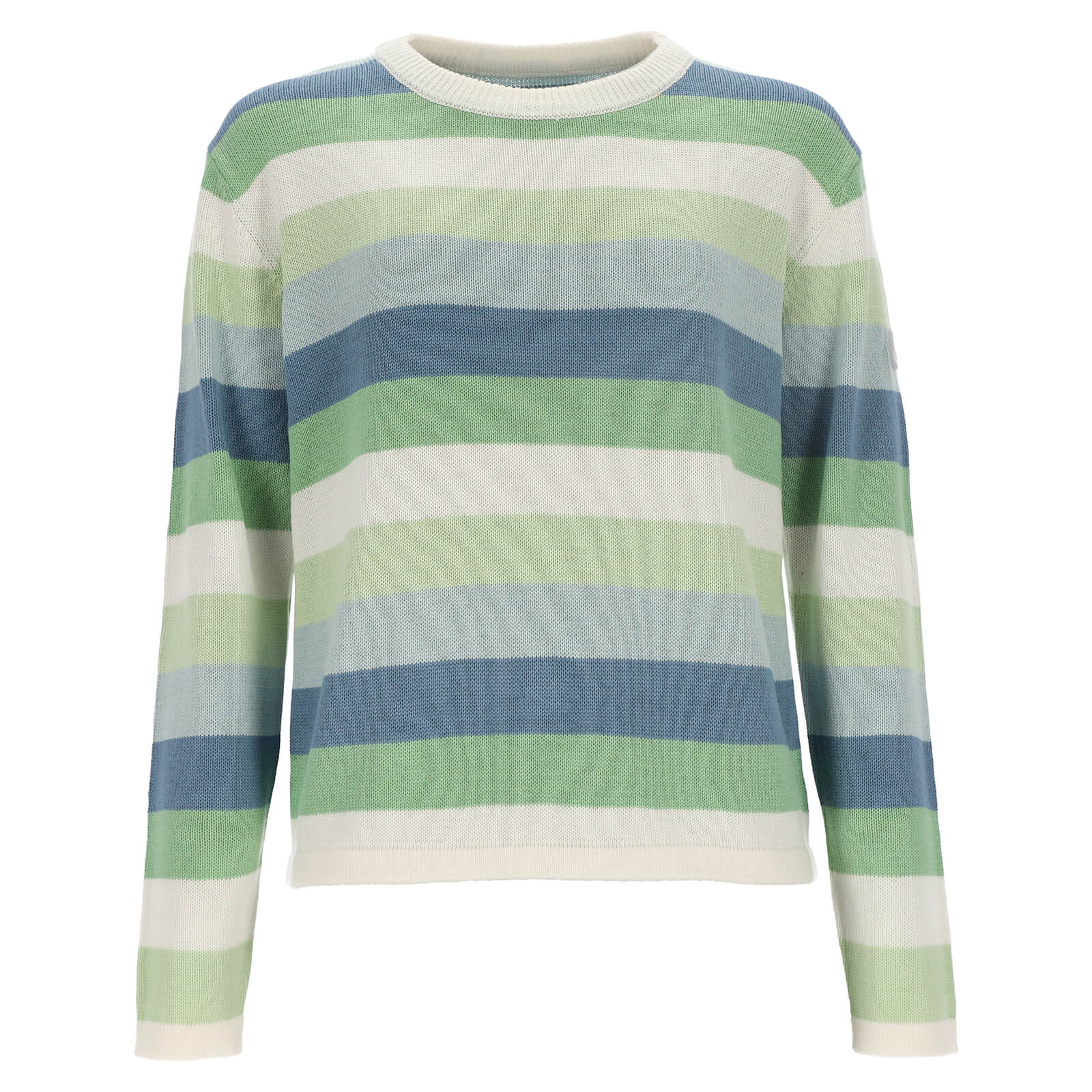 Leitfeuer Damen Strickpullover mit mehrfarbigen Streifen - Gestreifter Pullover mit überschnittenen Arm in Grün-Rauchblau Größe M
