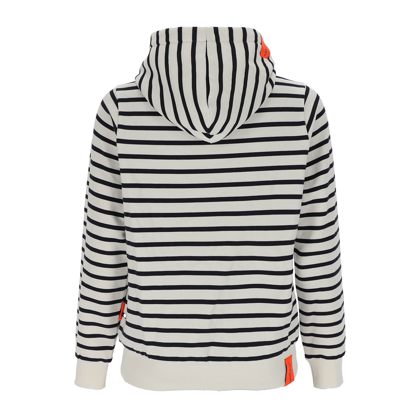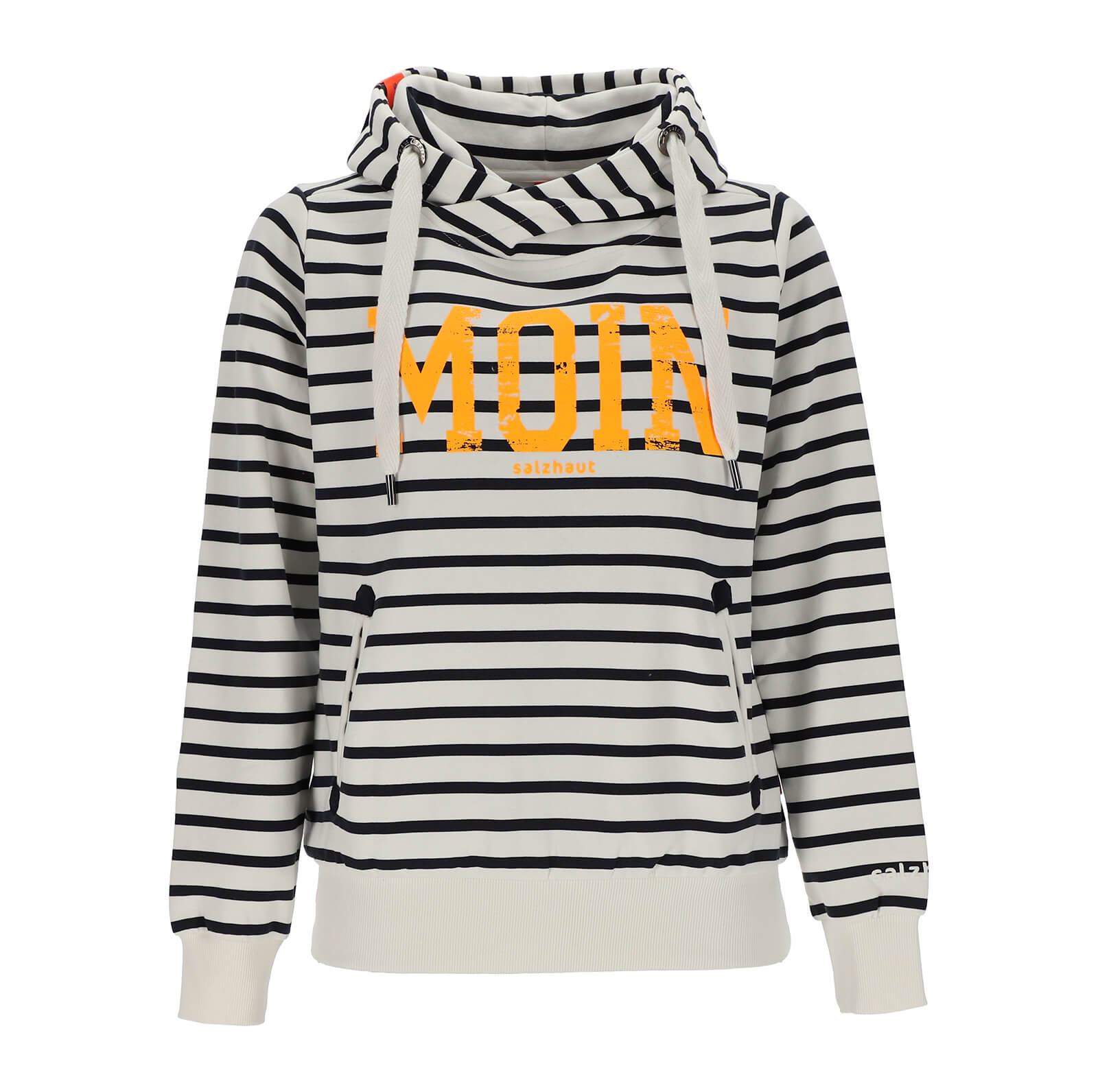 Salzhaut Damen Hoodie Sünn mit Moin-Print - Modischer Kapuzenpullover mit Kapuze mit Kordelband in Navy-Offwhite-Neon-Orange Größe S