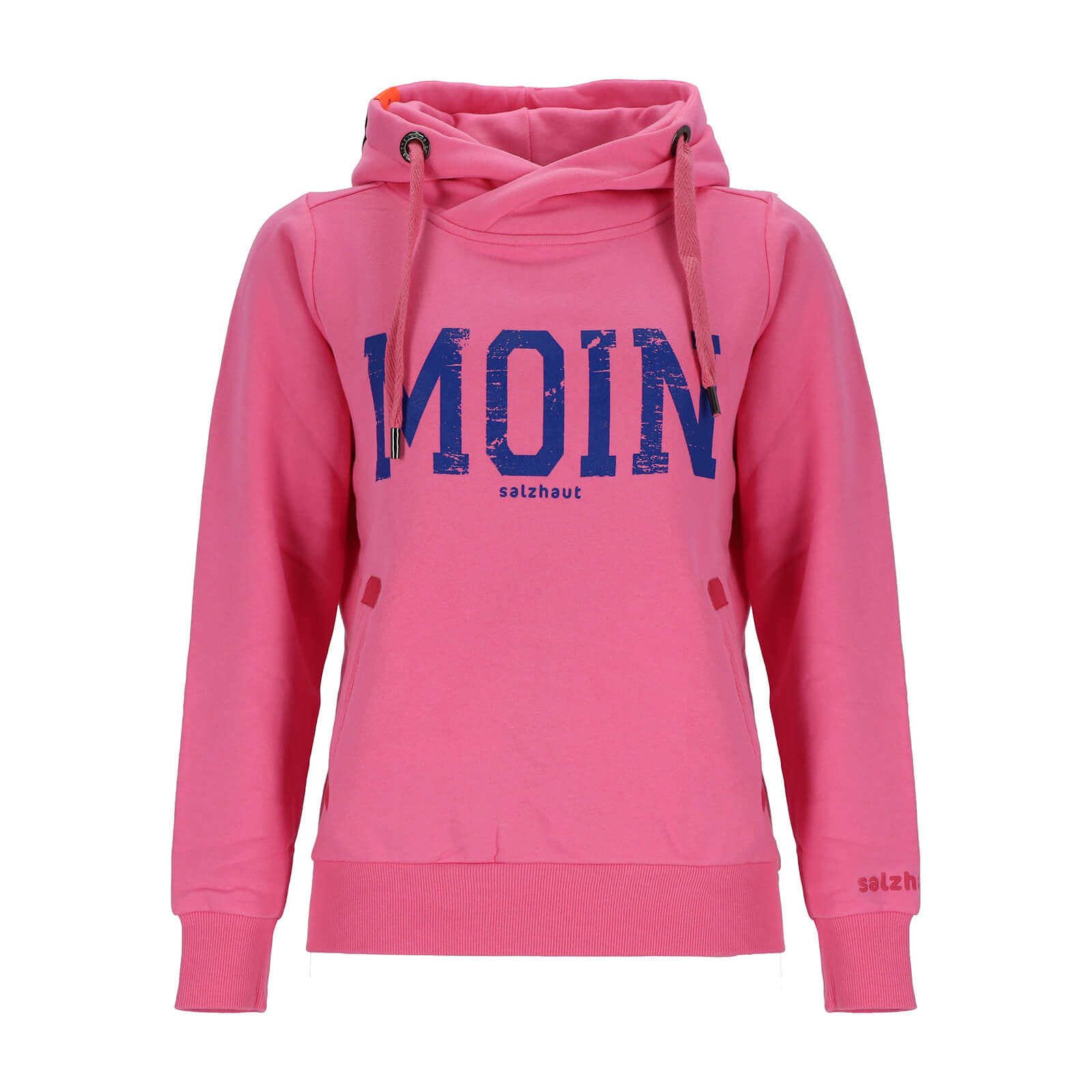 Entdecken Sie unseren modischen Kapuzenpullover Sünn für Damen, der mit seinem stylischen Moin-Print auf der Front zu einem absoluten Must-Have wird. Der Siebdruck-Print verleiht dem Hoodie eine besondere Note und sorgt für einen trendigen Look.