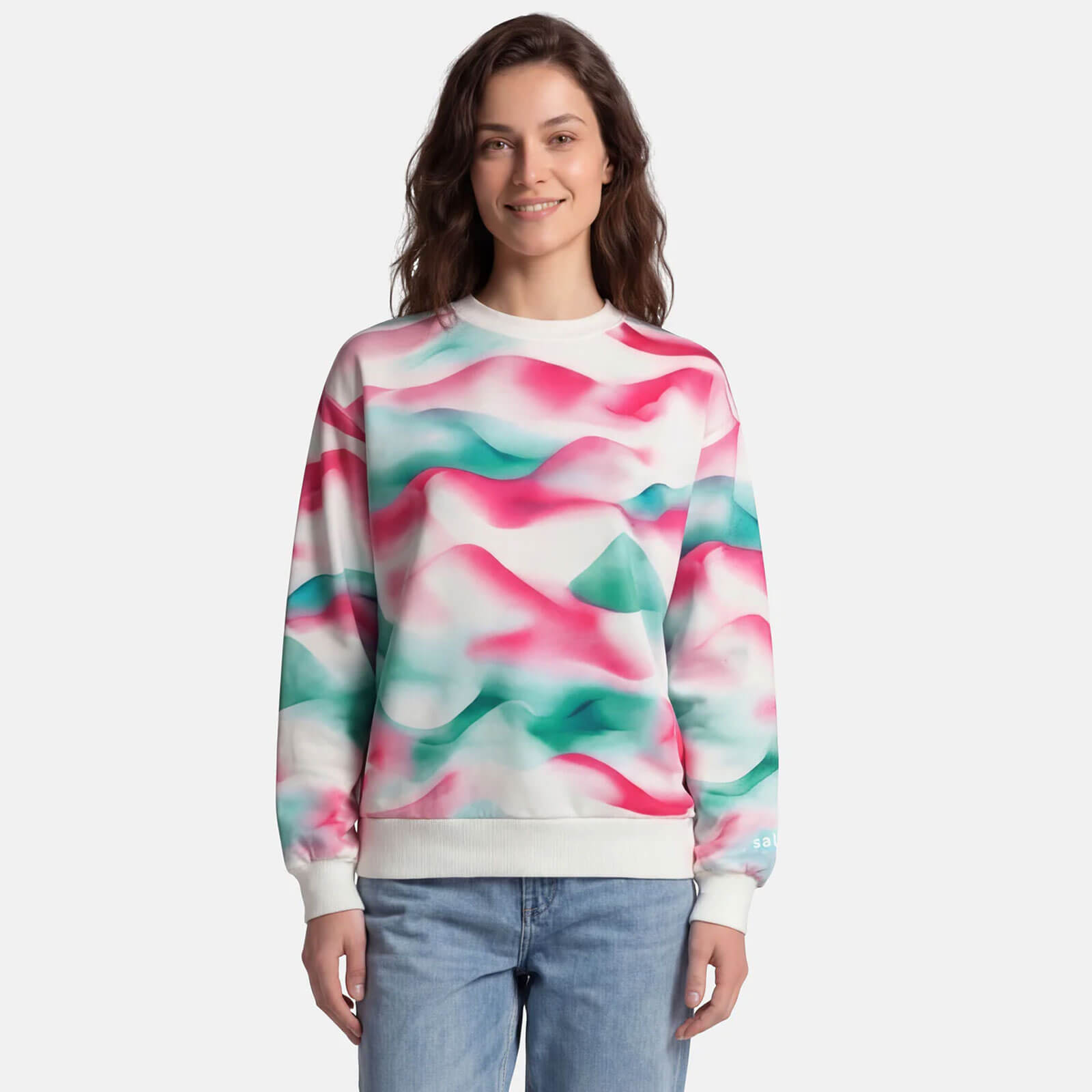 Salzhaut Damen Pullover Akschen mit buntem Wellen-All-Over-Print - Sweatshirt-Pulli mit Rundhalsausschnitt