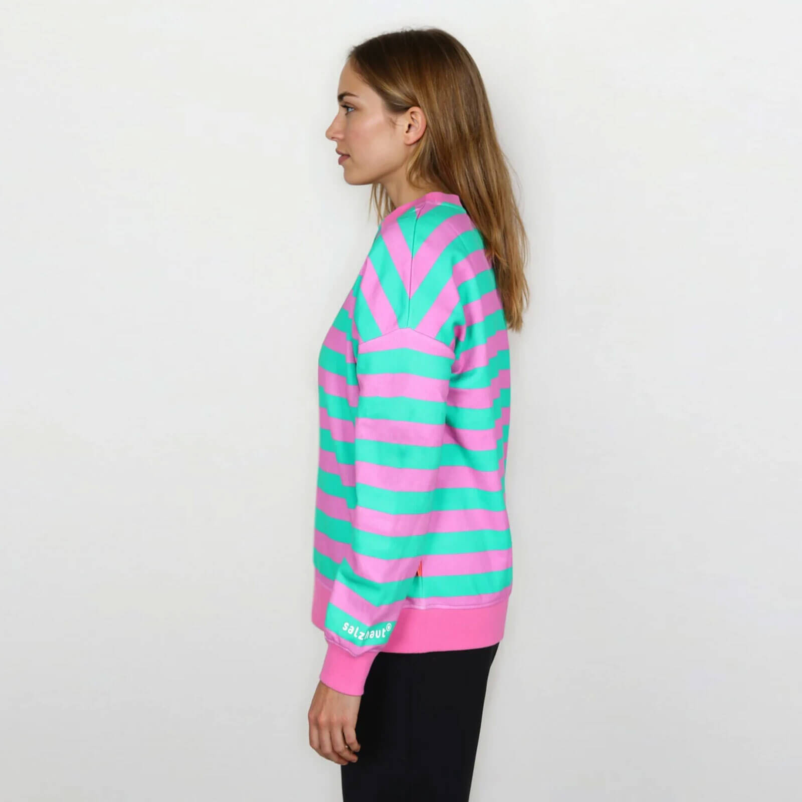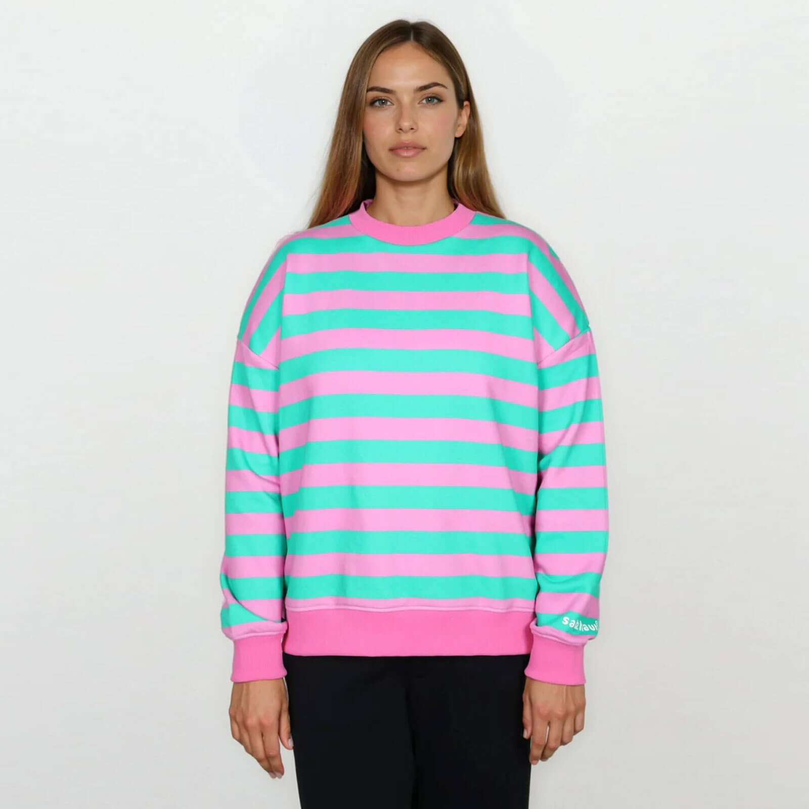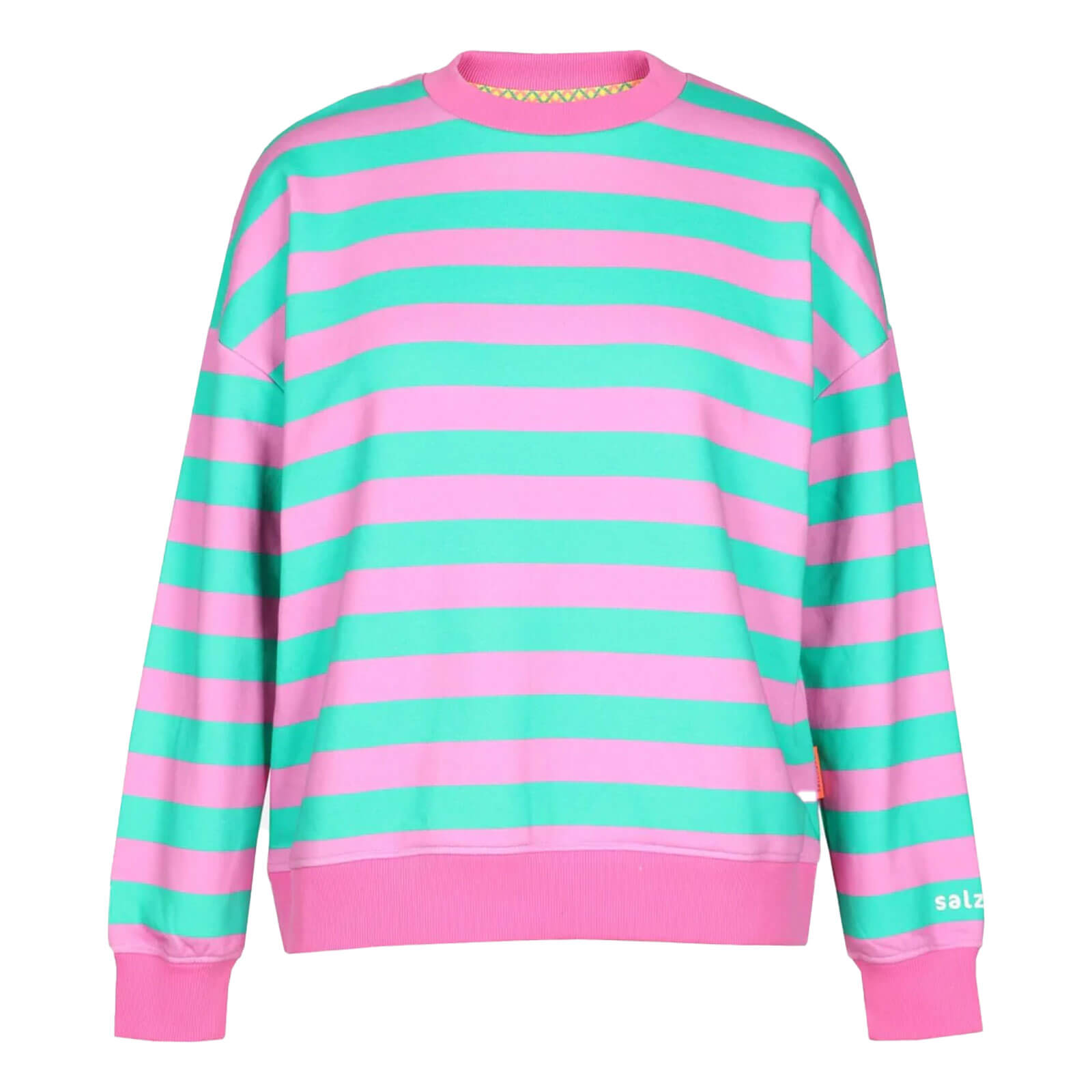 Salzhaut Damen Pullover Arfen mit Streifen - Gestreifter Sweatshirt-Pulli mit Rundhalsausschnitt in Blossom-Lagoon Größe S