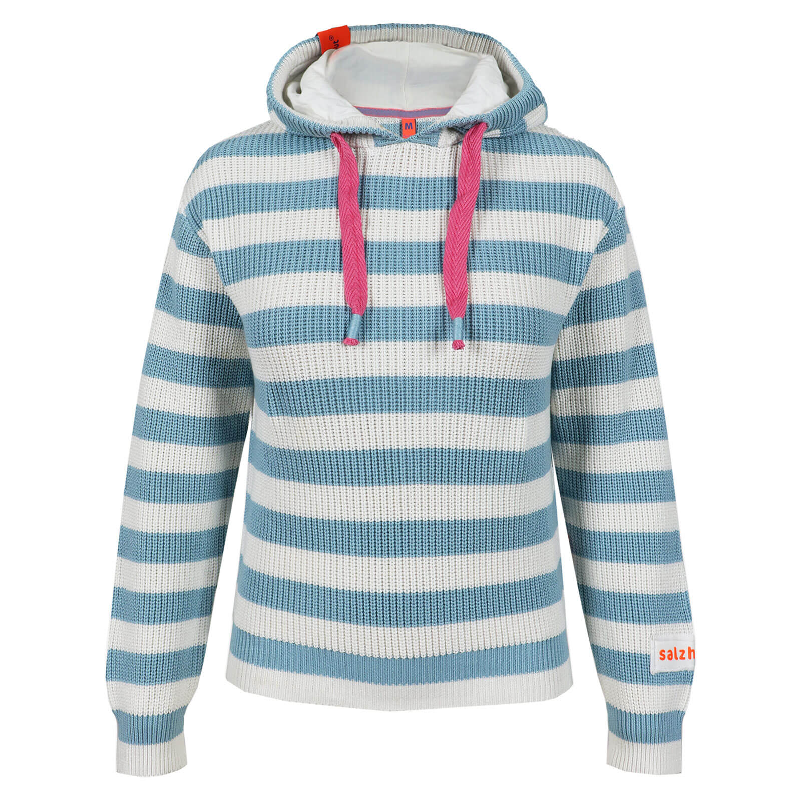 Salzhaut Damen Strick-Hoodie Velozipee mit breiten Streifen - Gestreifter Strickpullover mit Kapuze in Breeze-Offwhite Größe S