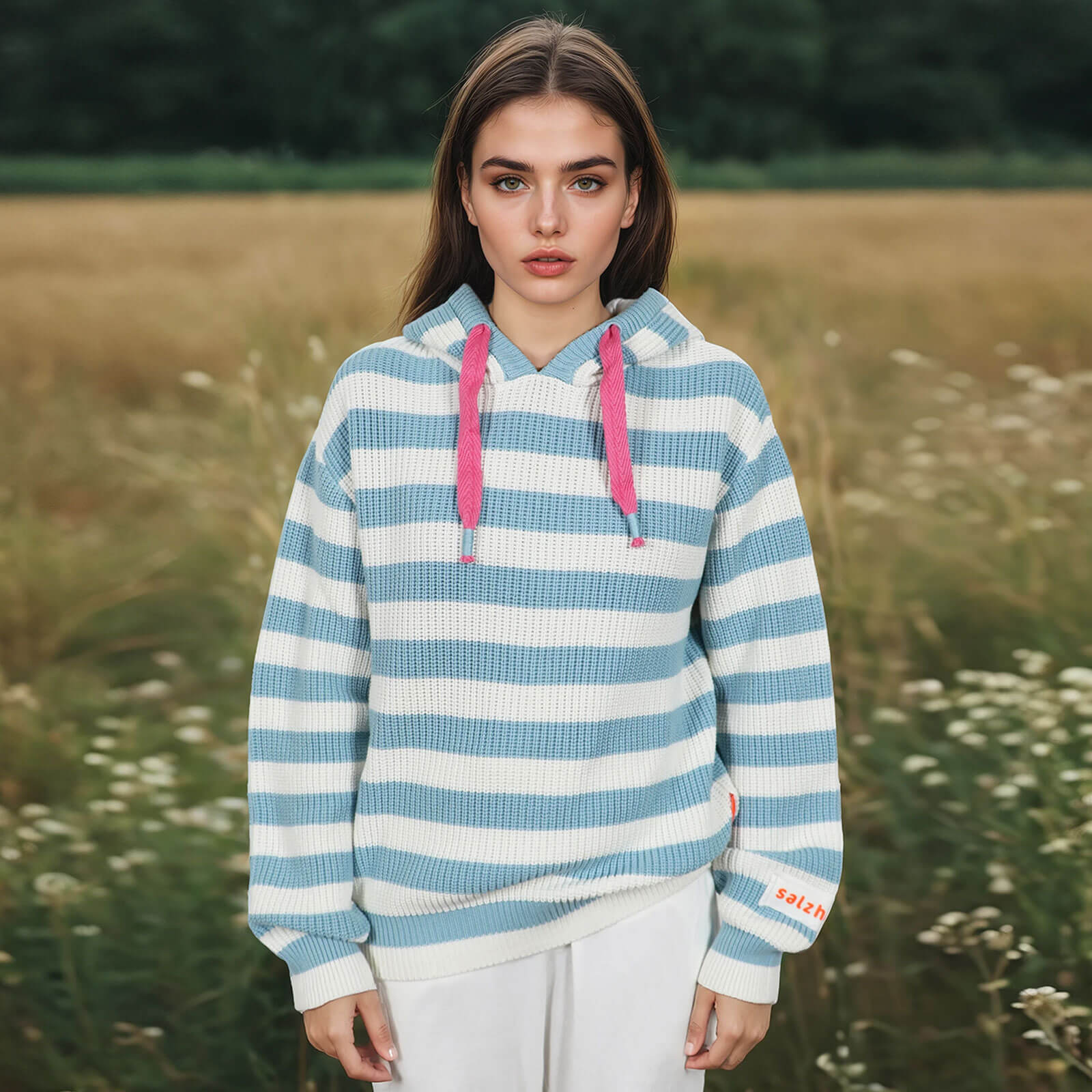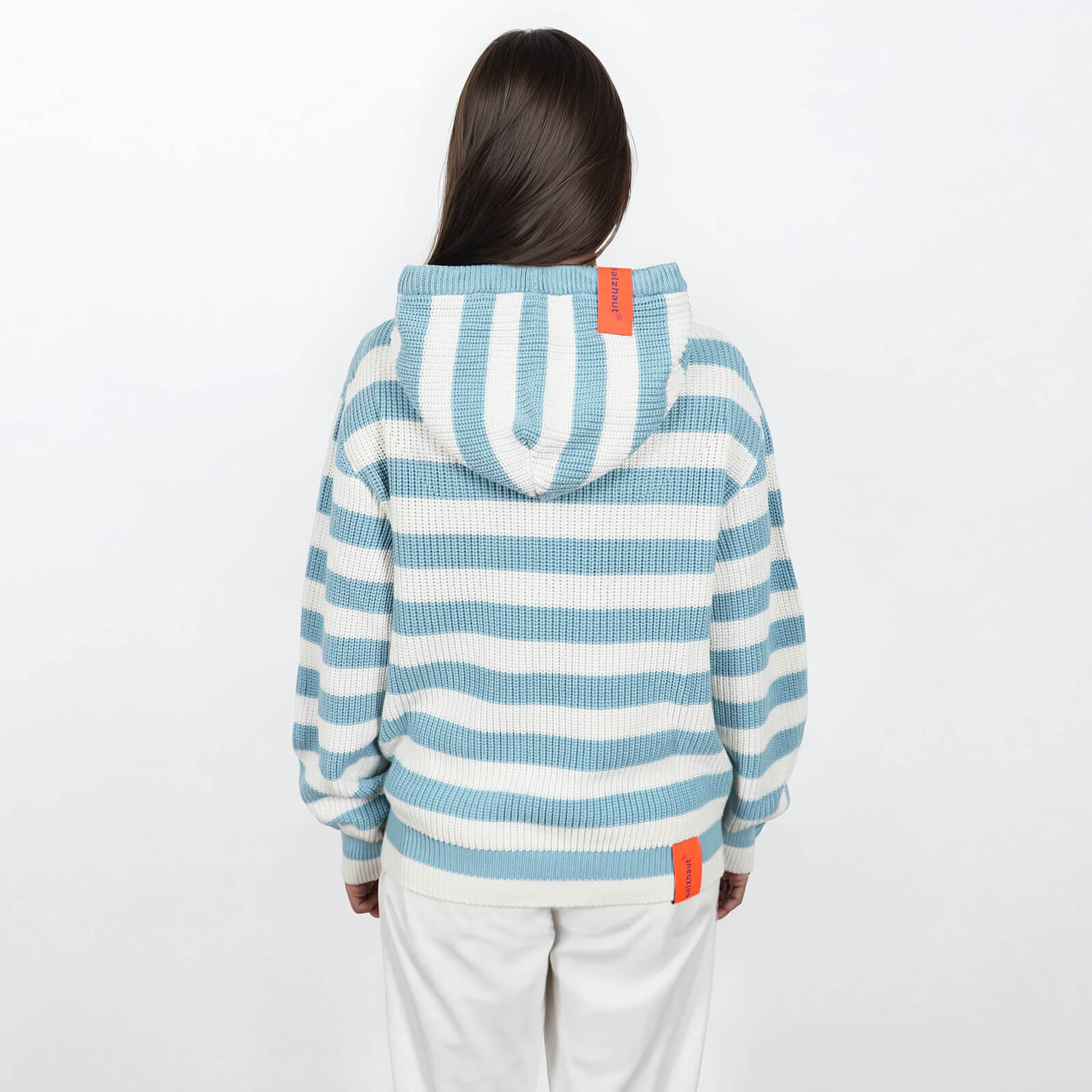 Salzhaut Damen Strick-Hoodie Velozipee mit breiten Streifen - Gestreifter Strickpullover mit Kapuze
