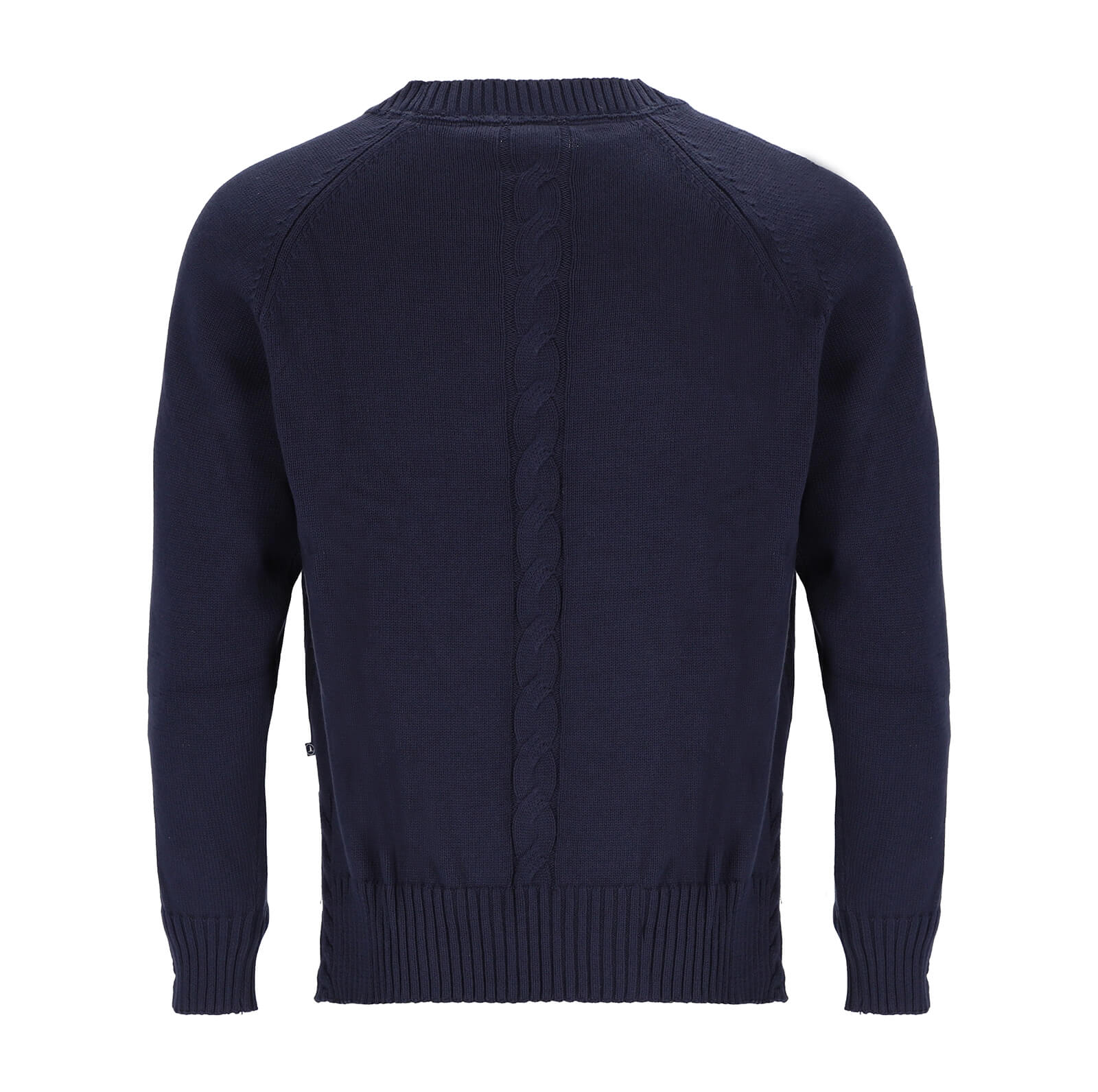 Gefertigt aus weichem Baumwollstrick, überzeugt der Pullover durch seinen angenehmen Tragekomfort und seine langlebige Verarbeitung. Ein besonderes Highlight ist das mittige Zopfmuster auf dem Rücken, das dem sonst schlichten Look eine dezente Raffinesse verleiht. Die modernen Raglanärmel sorgen für eine bequeme Passform und ein sportlich-feminines Erscheinungsbild. Der klassische Rundhalsausschnitt und die formstabilen Strickbündchen an Ärmeln und Saum runden das Design harmonisch ab.
