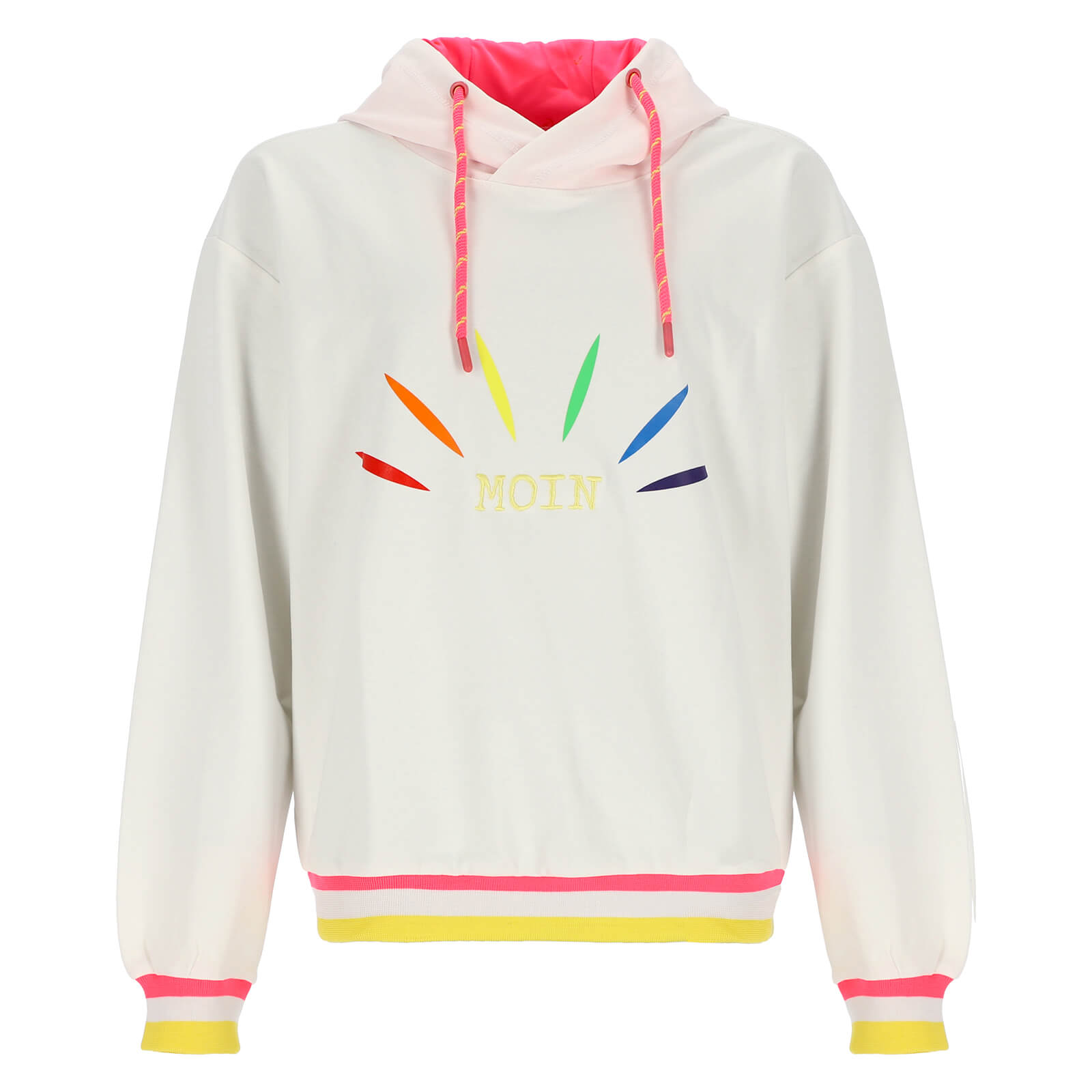 Wattlöper Damen Sweathoody mit bunten Regenbogenstrahlen und Moin-Stickerei - Modischer Kapuzenpullover in Offwhite Größe M