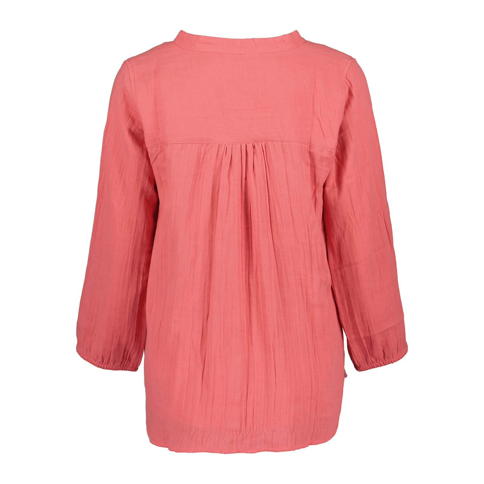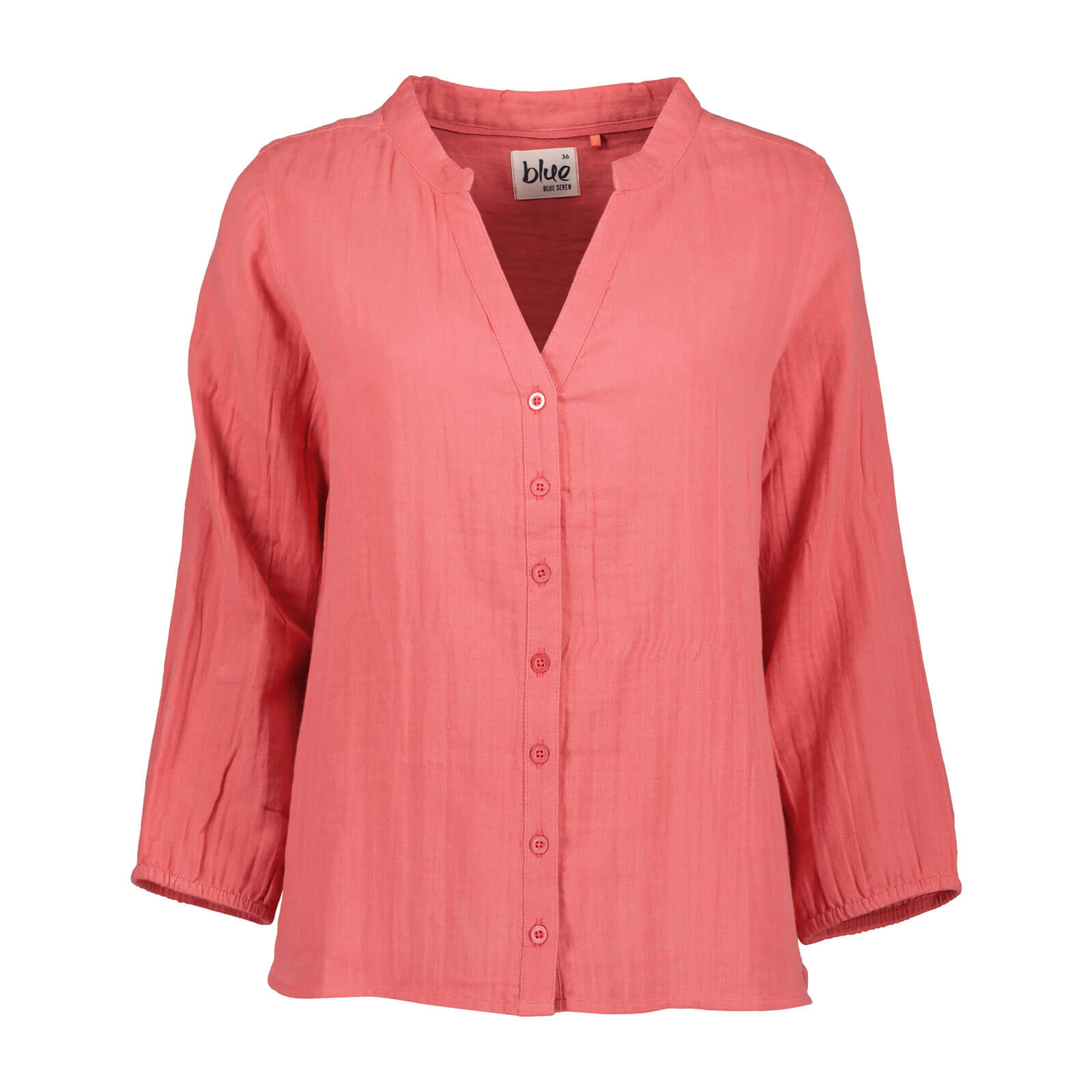Blue Seven Damen Bluse mit Henley-Ausschnitt - Unifarbene Damenbluse mit Knopfleiste in Hell Rot Größe 36