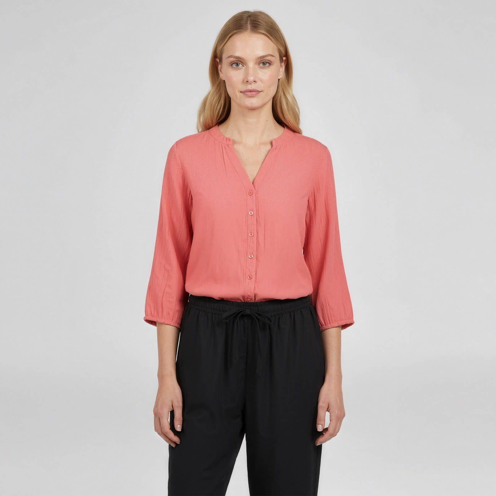 - Zeitloses Design: Unifarbene Damenbluse mit modernem Henley-Ausschnitt und Knopfleiste