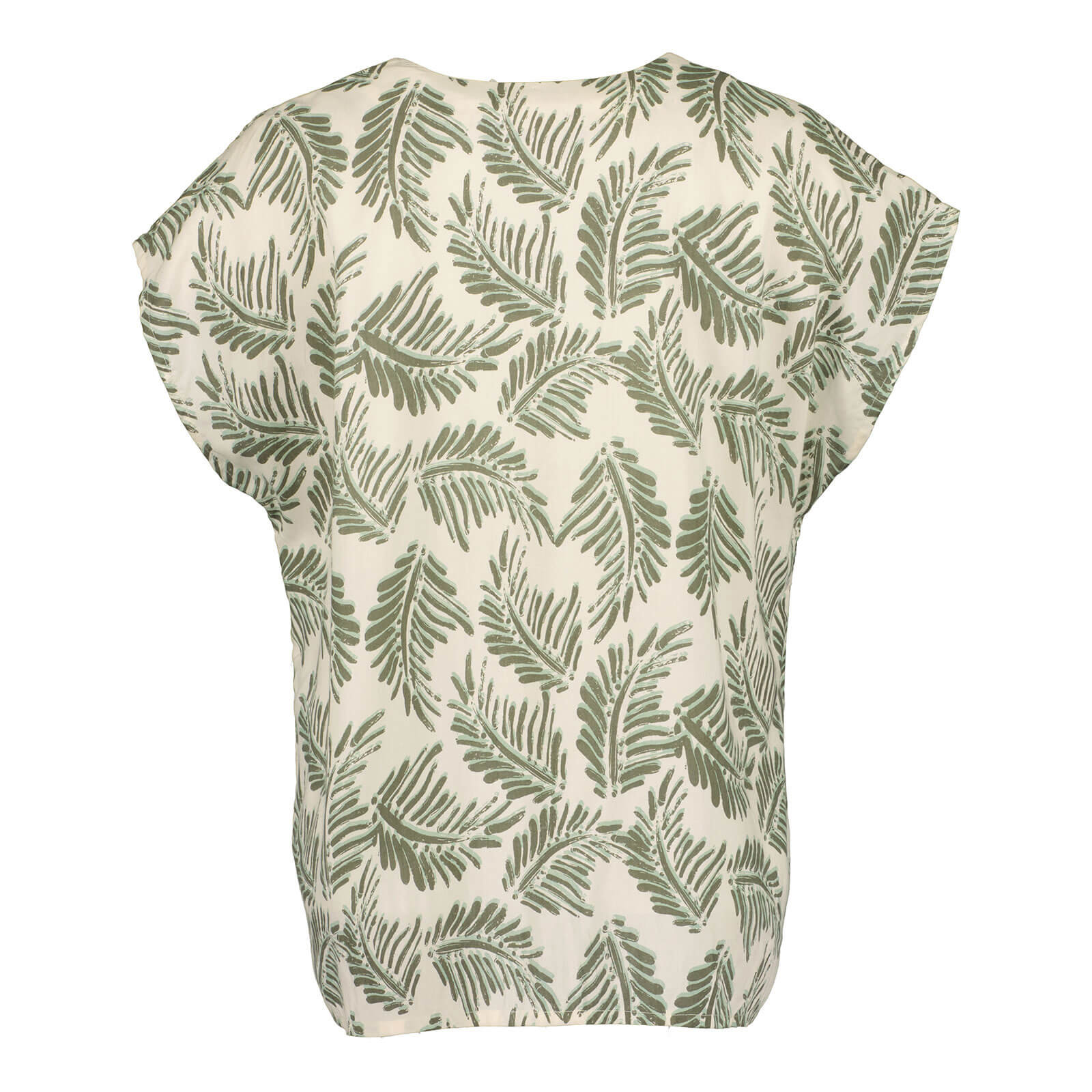 Das stilvolle Blattmuster verleiht der Bluse einen natürlichen, trendigen Look und macht sie zum idealen Begleiter für Frühling und Sommer. Der V-Ausschnitt setzt das Dekolleté dezent in Szene und sorgt für eine feminine Ausstrahlung. Die kurzen Ärmel mit überschnittenen Schultern bieten eine lockere Passform und angenehme Bewegungsfreiheit – perfekt für warme Tage.