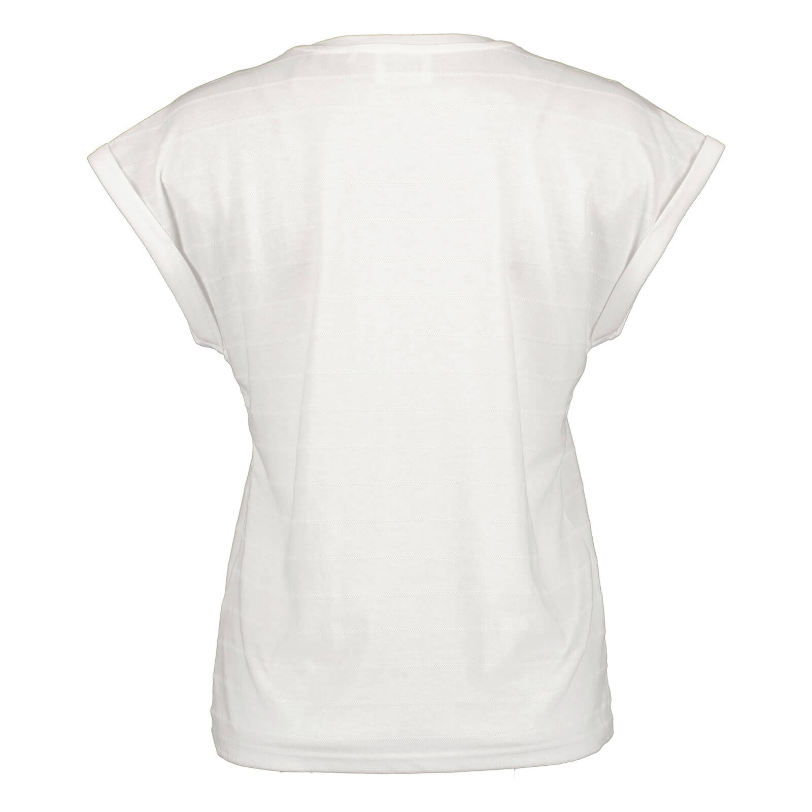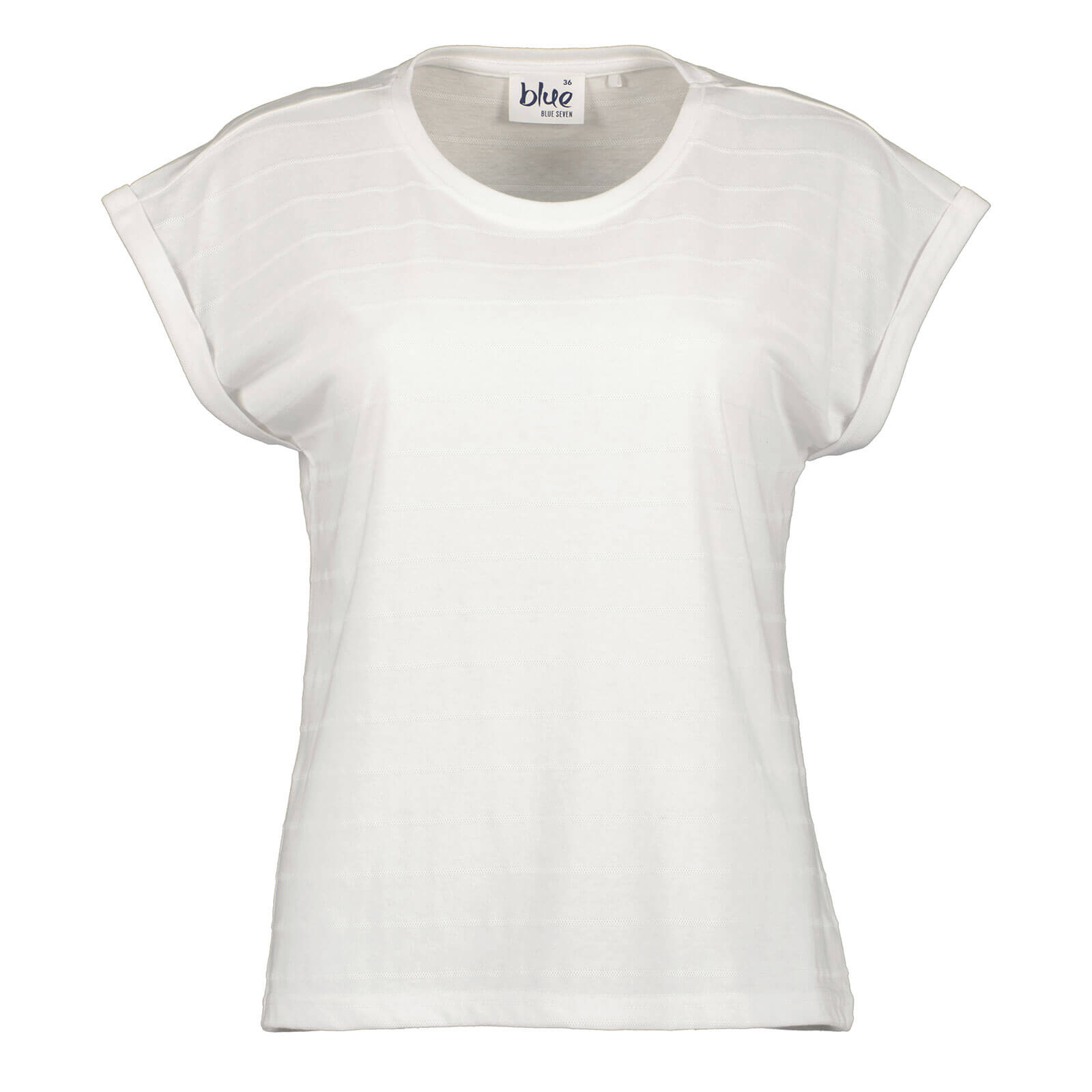 Blue Seven Damen T-Shirt im dezenten Streifen-Design - Kurzarm-Shirt mit überschnittenen Schultern in Weiß Größe 36