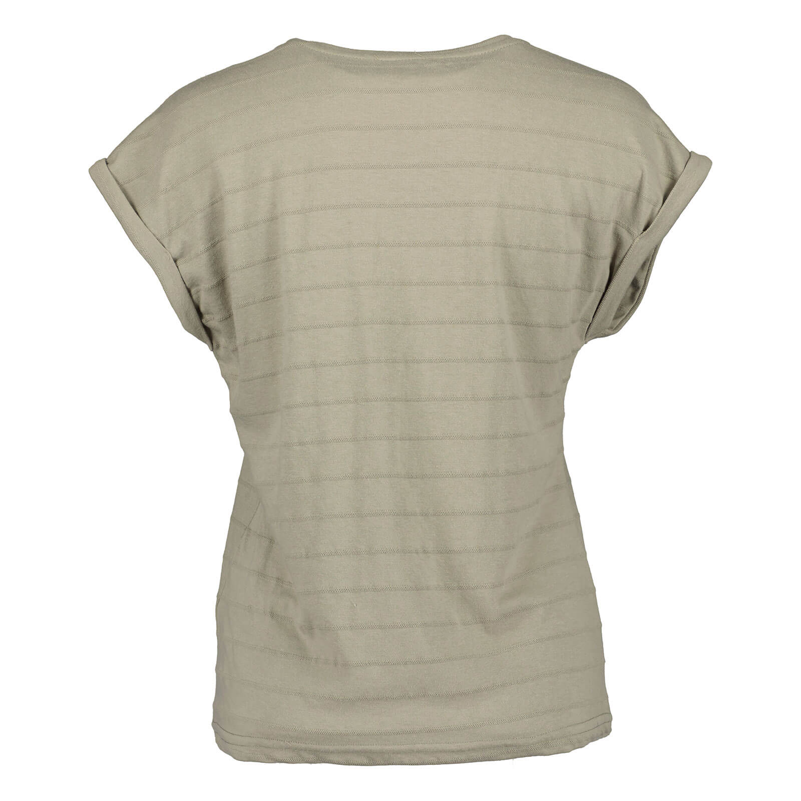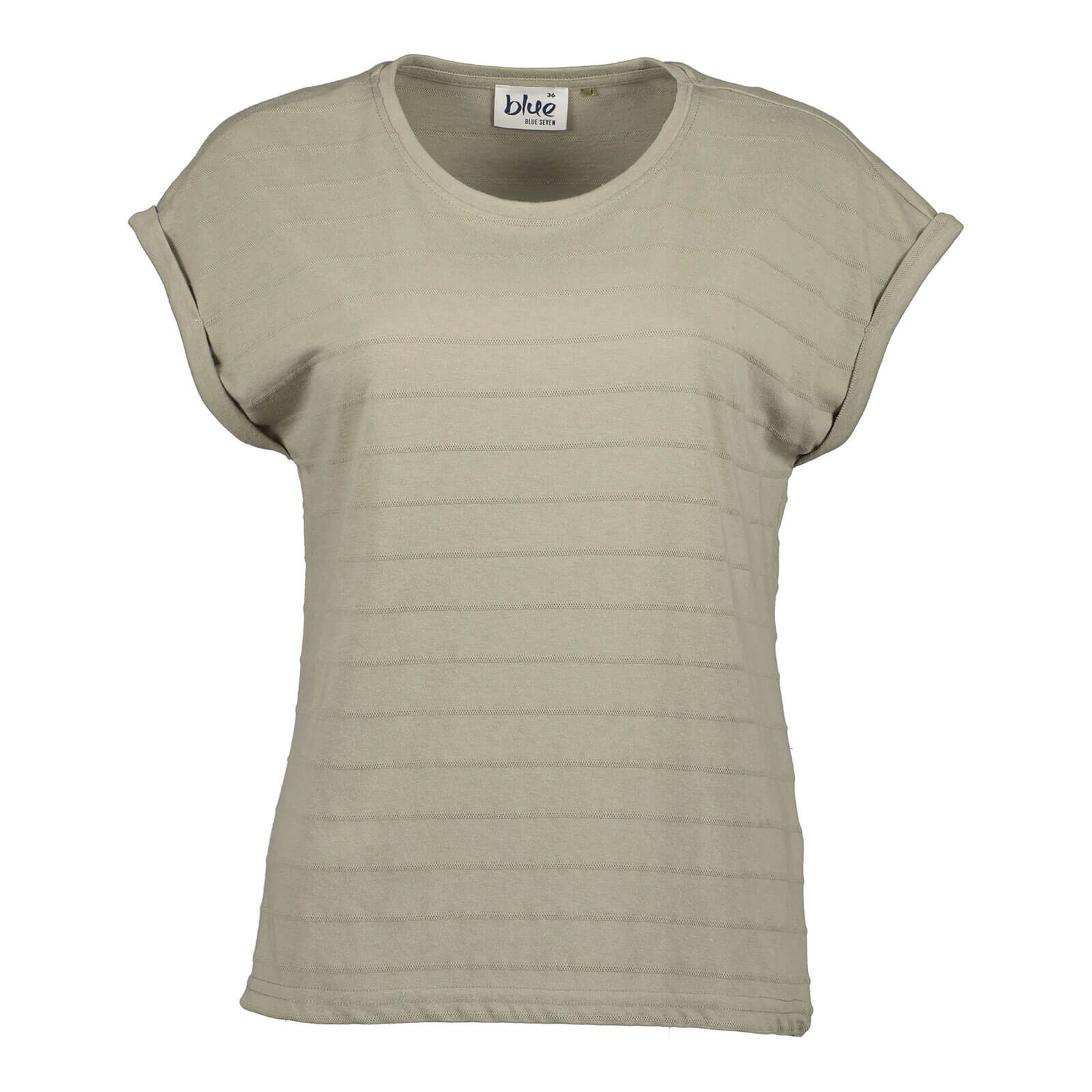 Blue Seven Damen T-Shirt im dezenten Streifen-Design - Kurzarm-Shirt mit überschnittenen Schultern in Khaki Größe 36