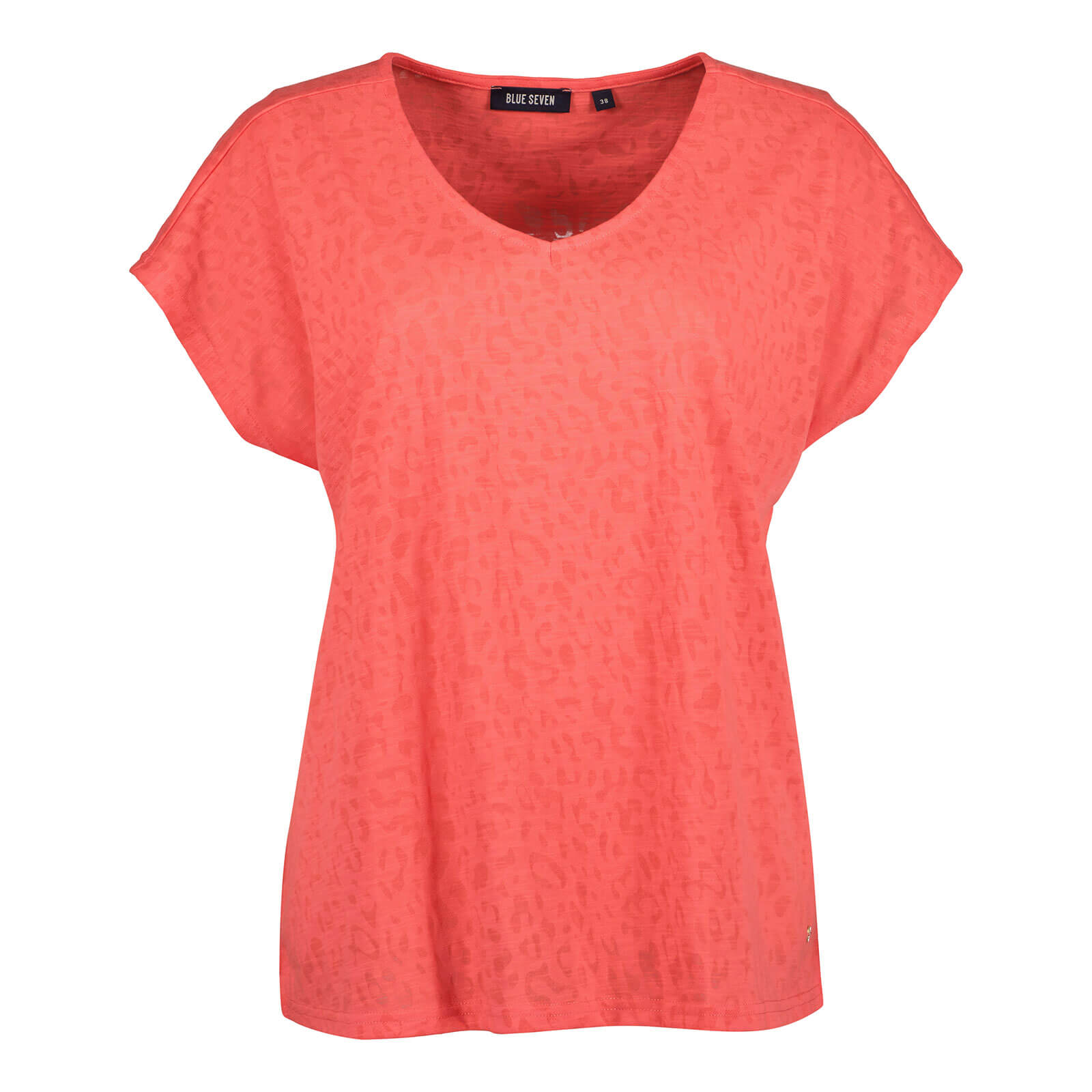 Blue Seven Damen T-Shirt mit V-Ausschnitt - Unifarbenes Kurzarm-Shirt mit überschnittenen Schultern in Tomate Größe 38