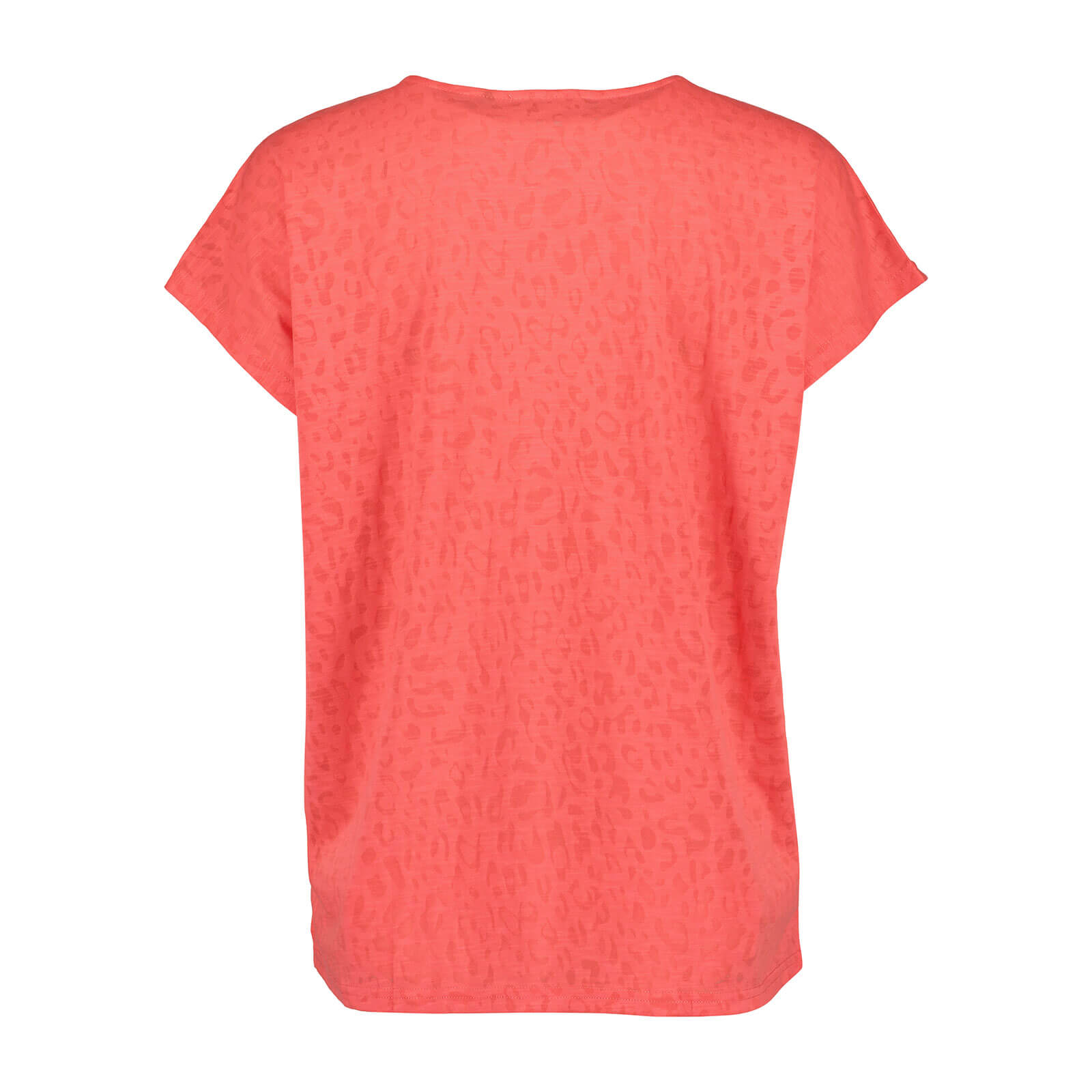Die modische Muster-Struktur verleiht dem Shirt eine besondere Optik und macht es zu einem stilvollen Basic, das sich vielseitig kombinieren lässt – perfekt für Alltag, Freizeit oder entspannte Sommerlooks. Der feminine V-Ausschnitt setzt das Dekolleté dezent in Szene, während die überschnittenen Schultern für eine lässige, moderne Passform sorgen. Gefertigt aus reiner Baumwolle, fühlt sich das Shirt angenehm weich auf der Haut an und bietet ein luftiges Tragegefühl – ideal für warme Tage.