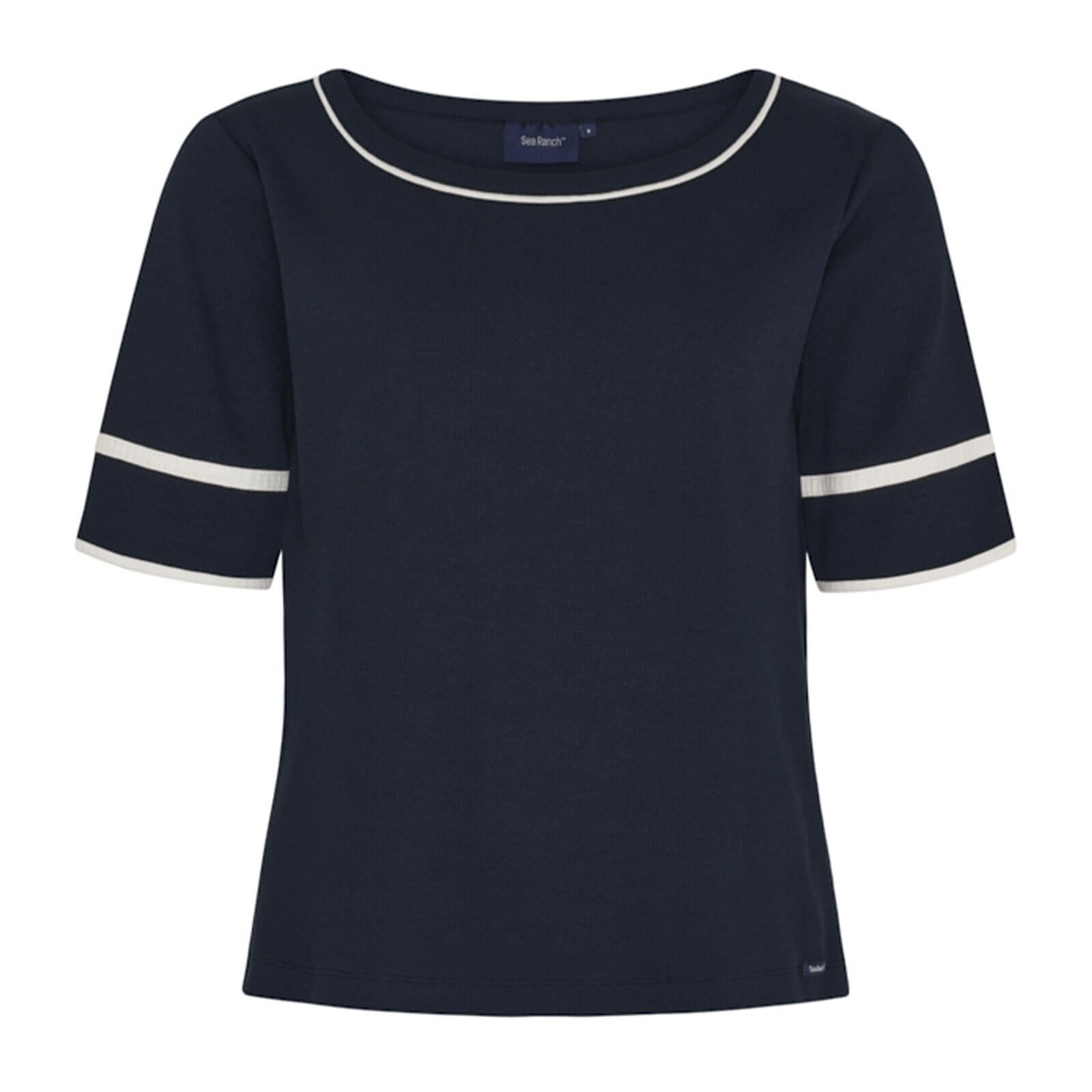 Sea Ranch Damen T-Shirt Marita mit Absetzungen - Kurzarm-Shirt mit Rundhalsausschnitt in Navy Größe M