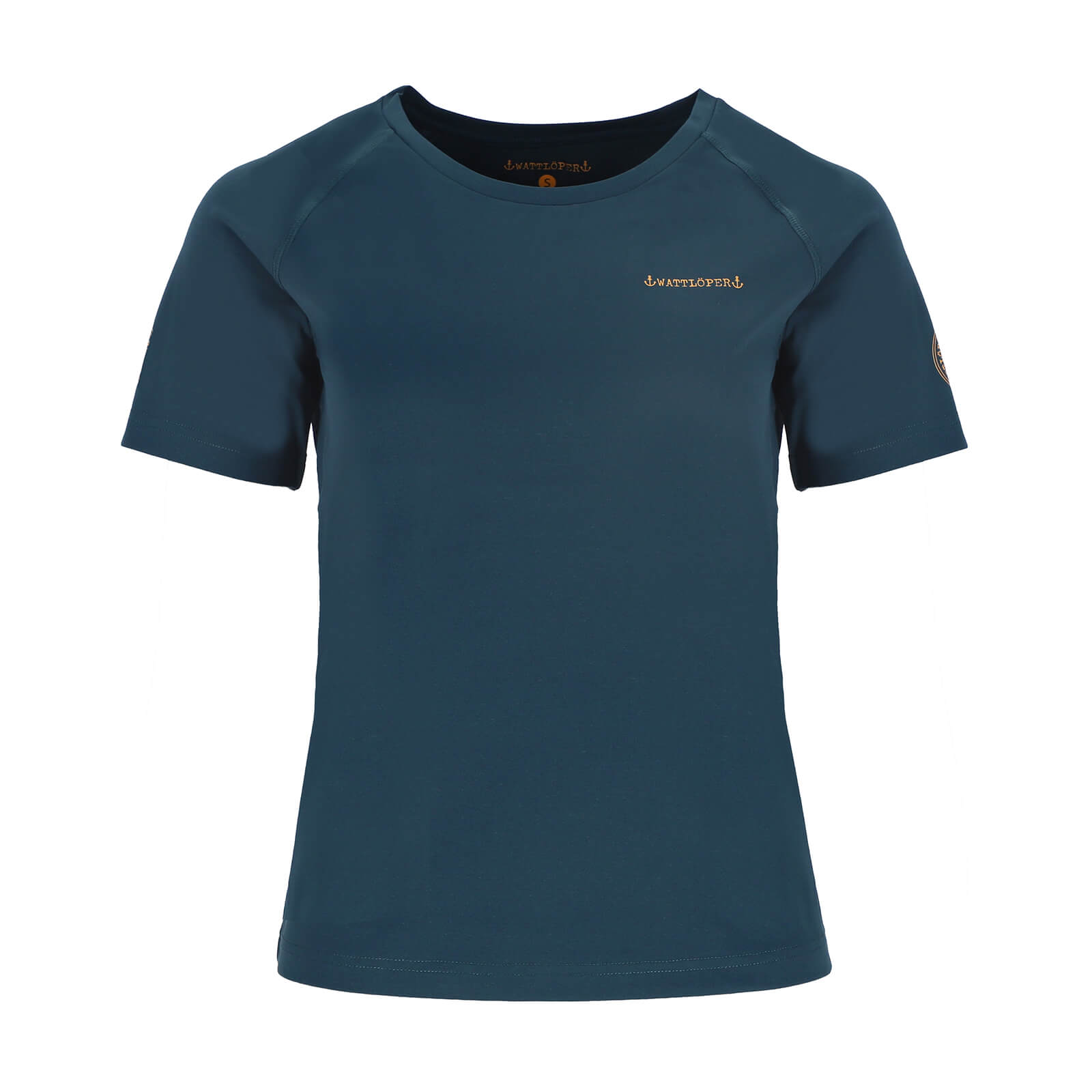 Wattlöper Damen Funktions-T-Shirt mit kleinem Logo-Print - Funktionsshirt Kurzarm-Shirt mit UV-Schutz in Petrol Größe M