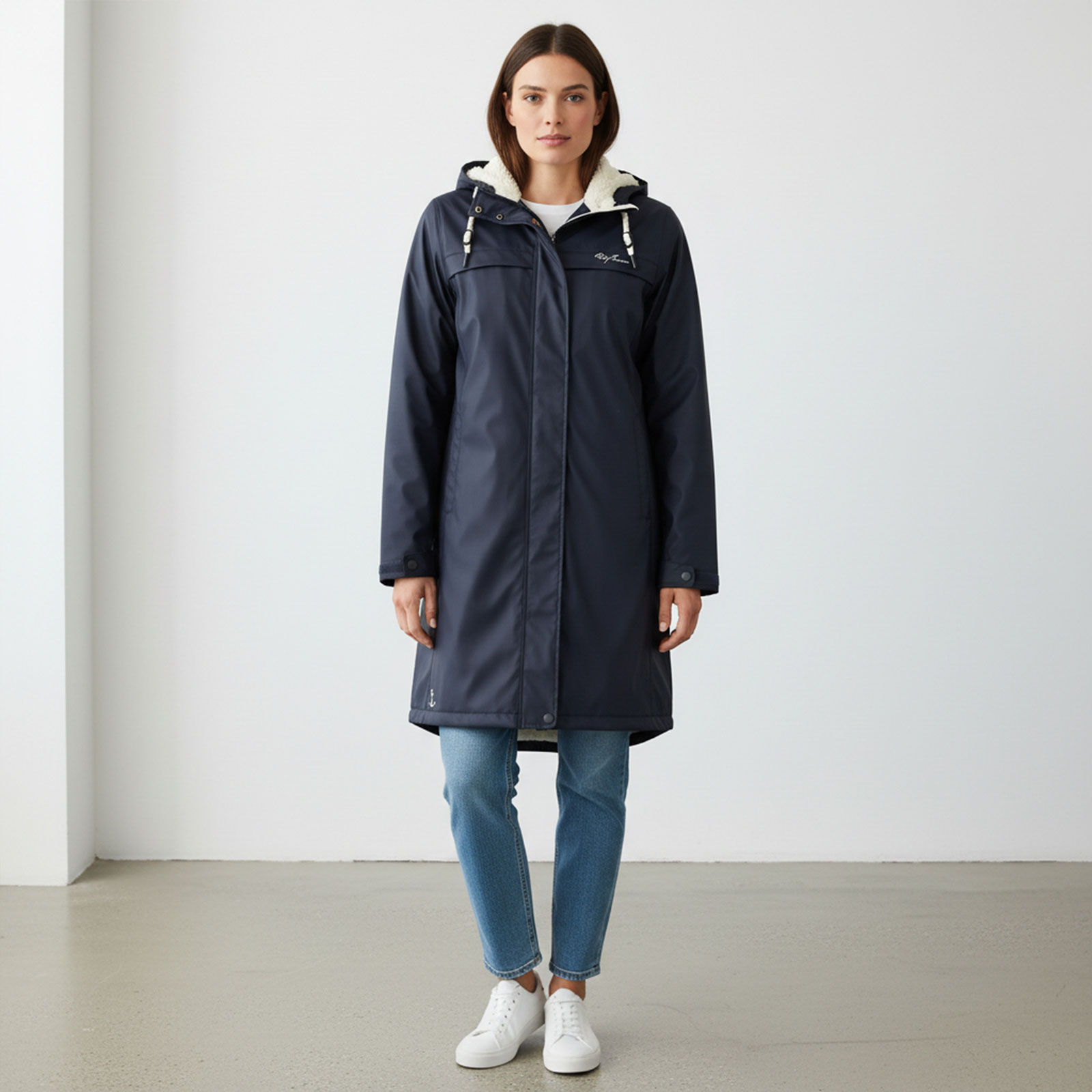 - Wasserdichter Damen-Regenmantel mit Teddy-Fleece-Futter – warm & stylisch