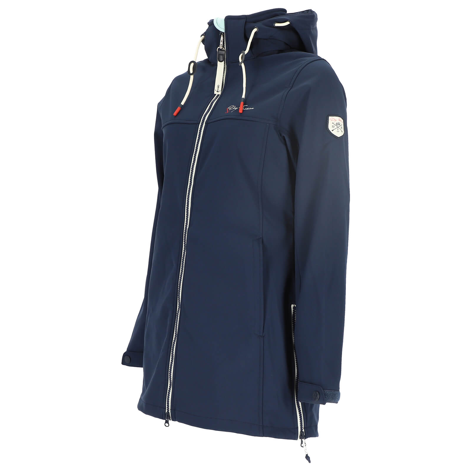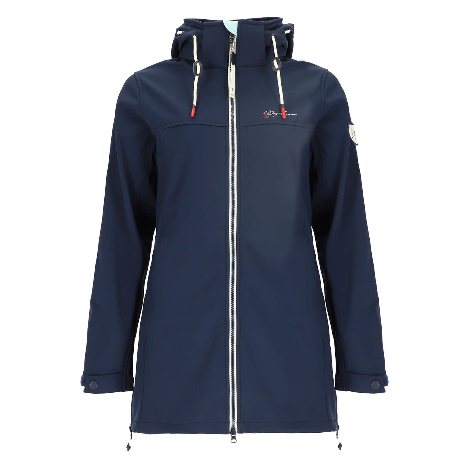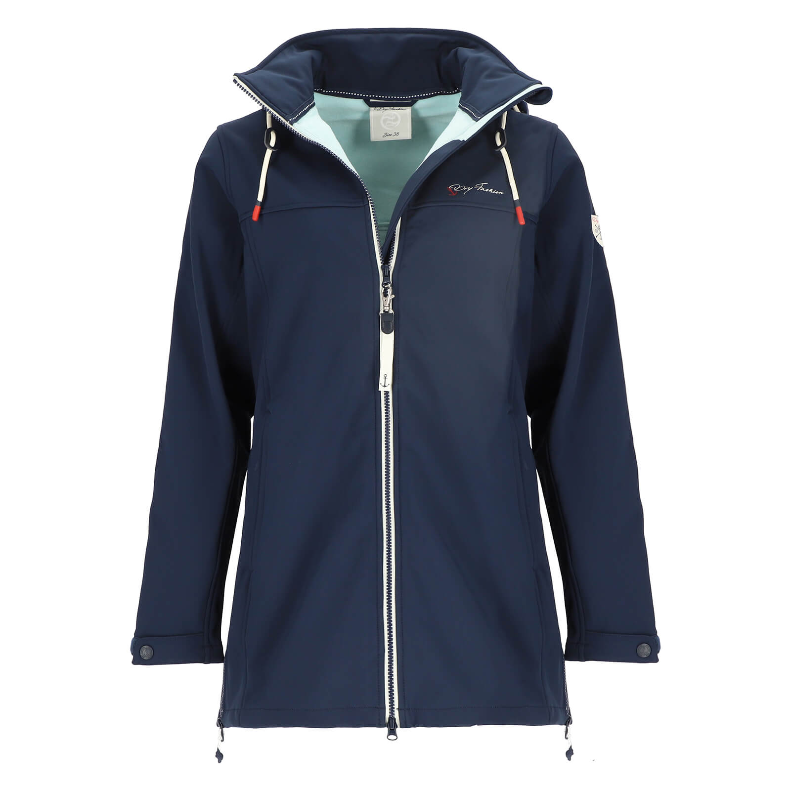 Dry Fashion Damen Softshellmantel Hooge mit Fleece-Innenfutter - Atmungsaktive Softshelljacke mit abnehmbarer Kapuze in Navy Größe 36
