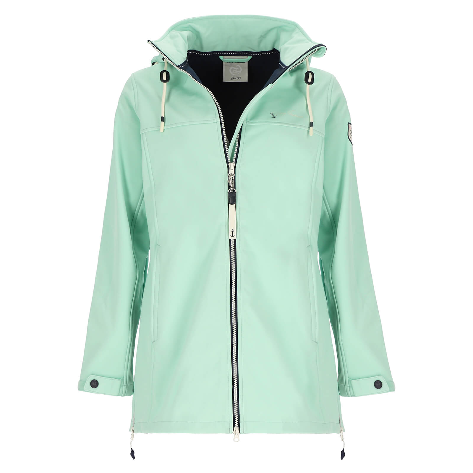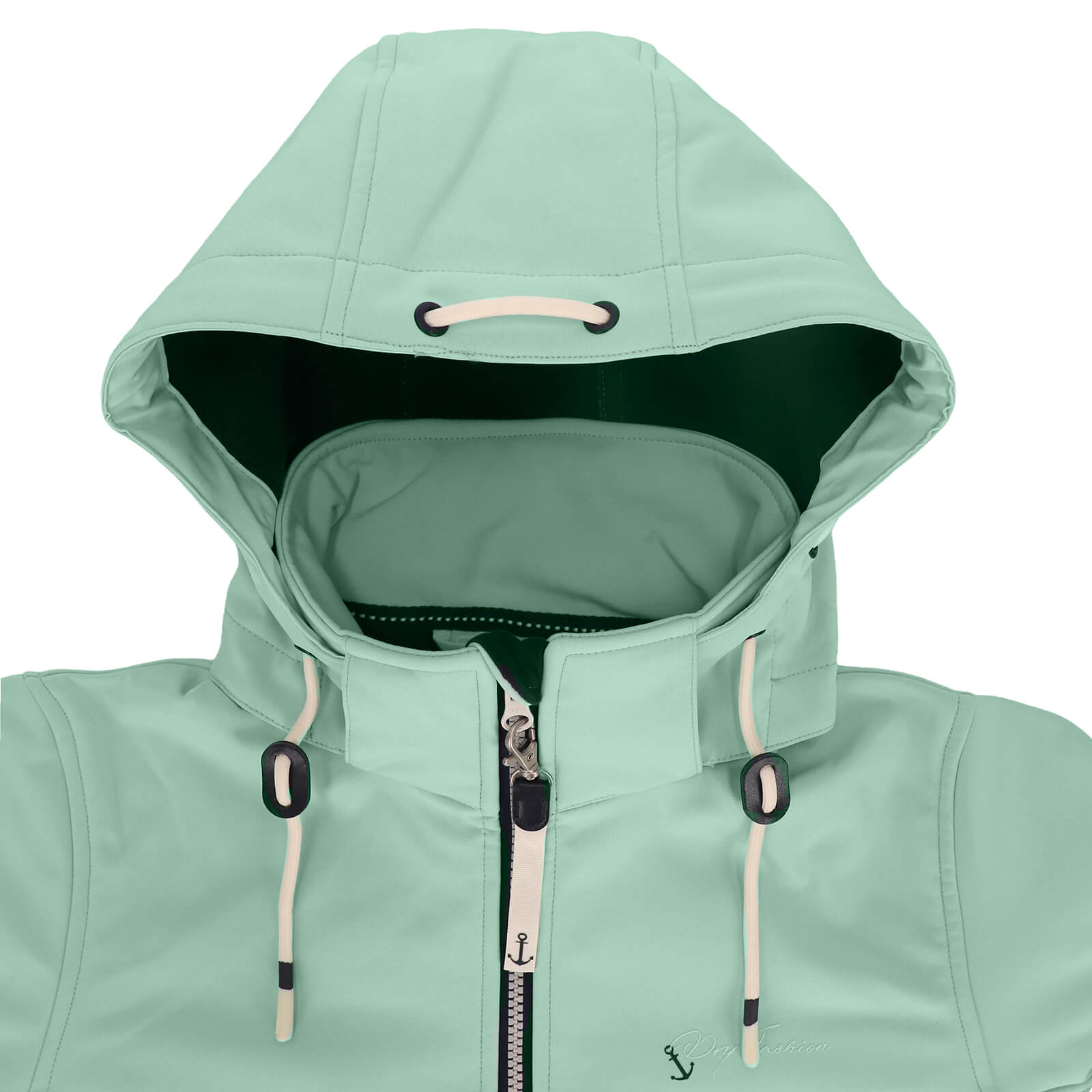 Dry Fashion Damen Softshellmantel Hooge mit Fleece-Innenfutter - Atmungsaktive Softshelljacke mit abnehmbarer Kapuze in Mint Größe 36