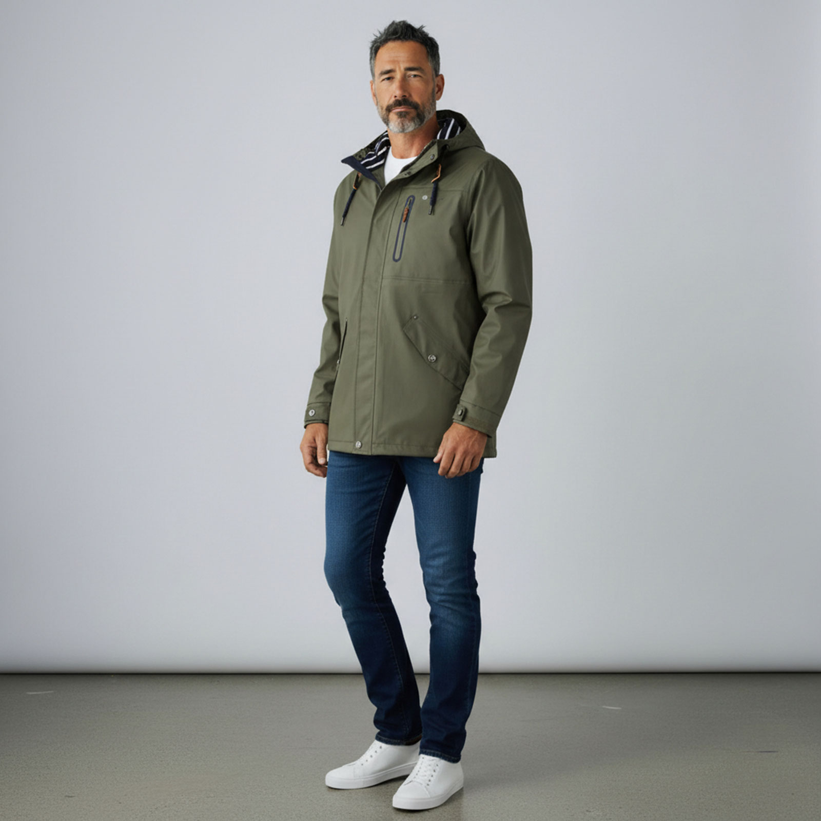 Die Regenjacke Lübeck ist nicht nur ein stylischer Begleiter im urbanen Alltag, sondern auch Ihr verlässlicher Partner bei windigem und nassem Wetter.