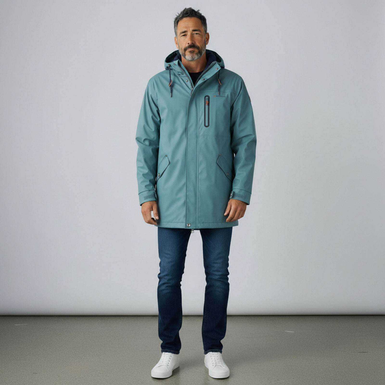Der plötzliche Wetterumschwung kann einen oft unvorbereitet treffen. Mit unserer wind- und wasserdichten Regenjacke Bergen für Herren sind Sie jedoch für alle Eventualitäten gewiß!
