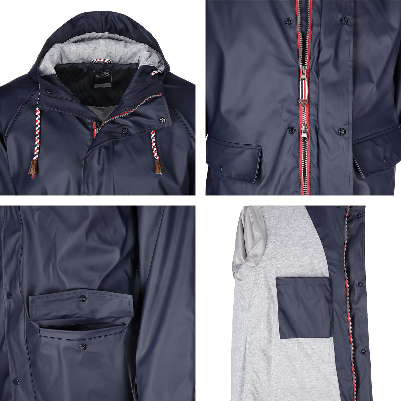 - OPTIMALER SCHUTZ - Der Regenmantel ist mit Kapuze mit verstellbarem Kordelzug im maritimen Look und kleinem Schirm ausgestattet und bietet Schutz vor Regen und Wind
