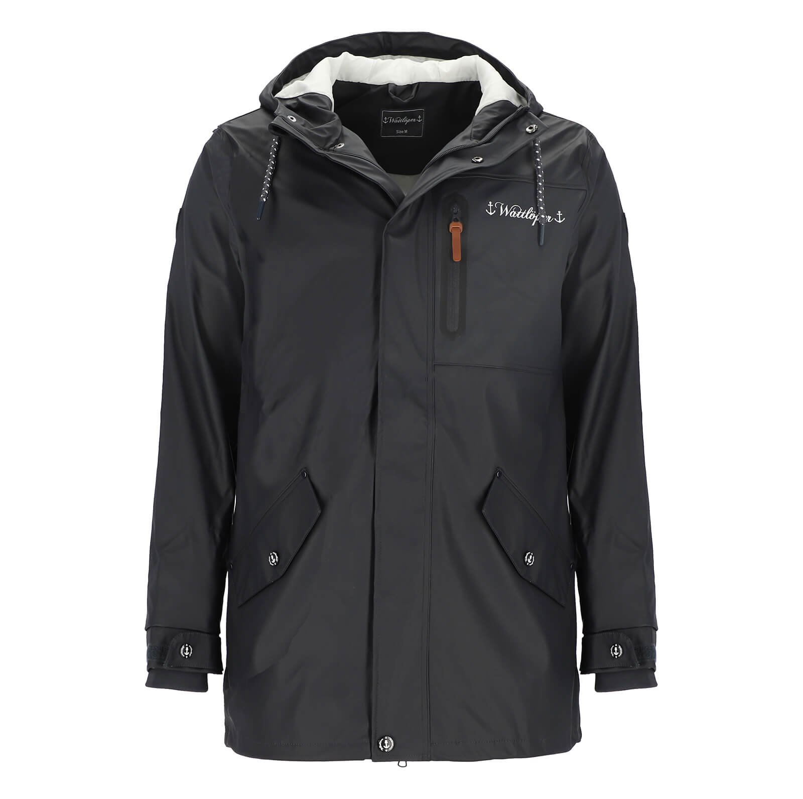 Wattlöper Herren Regenparka mit Kapuze und abgedecktem Reißverschluss - Beschichteter Regenmantel