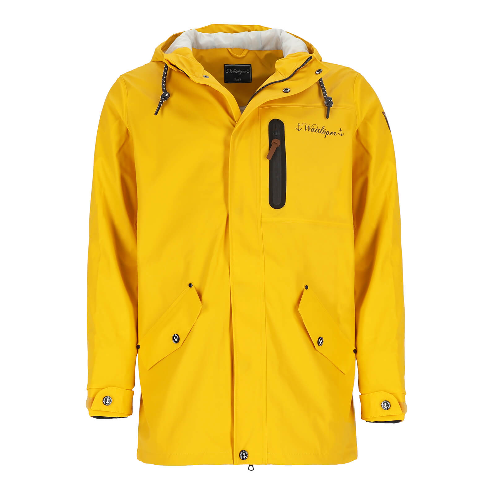 Wattlöper Herren Regenparka mit Kapuze und abgedecktem Reißverschluss - Beschichteter Regenmantel in Gelb Größe XS
