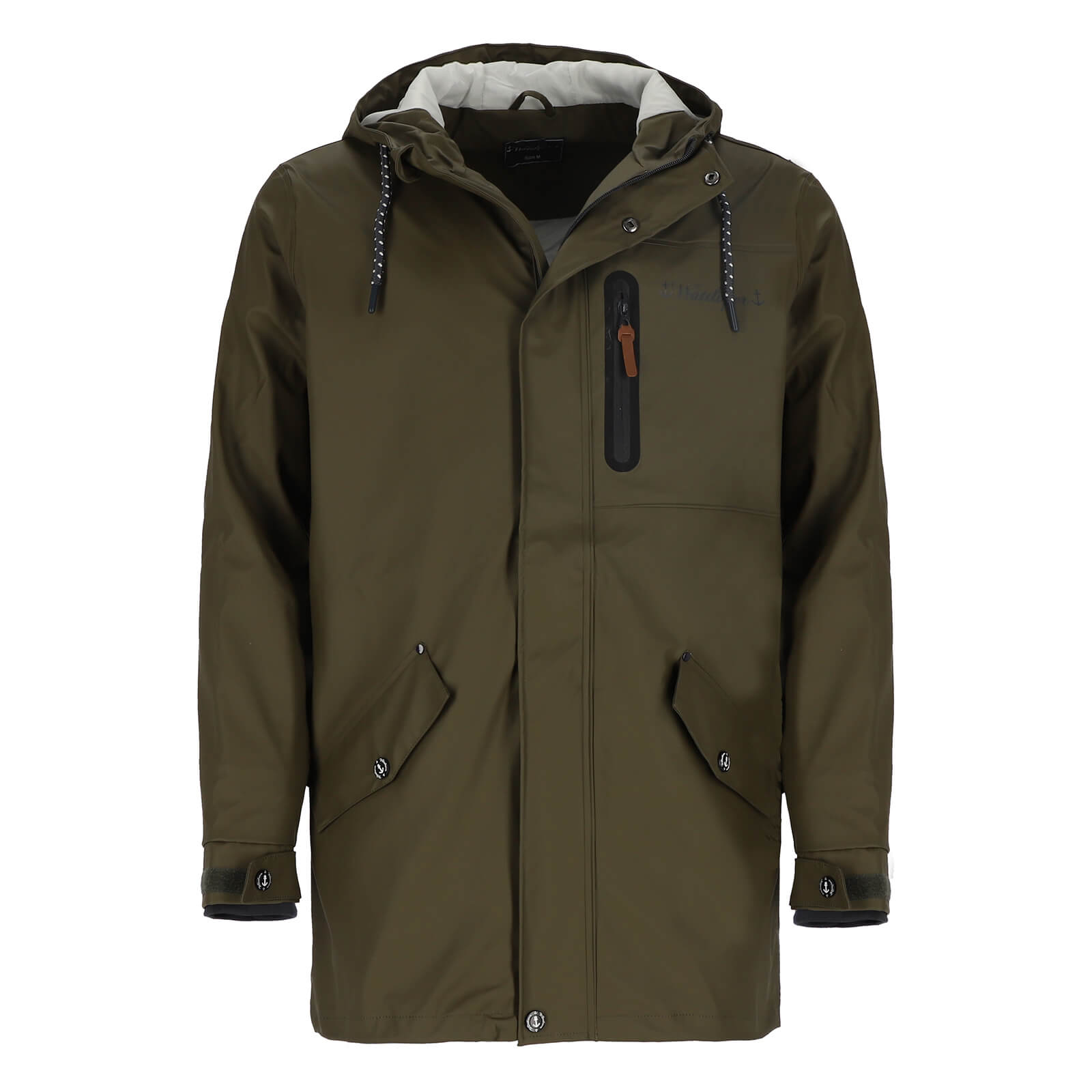 Wattlöper Herren Regenparka mit Kapuze und abgedecktem Reißverschluss - Beschichteter Regenmantel in Oliv Größe XS