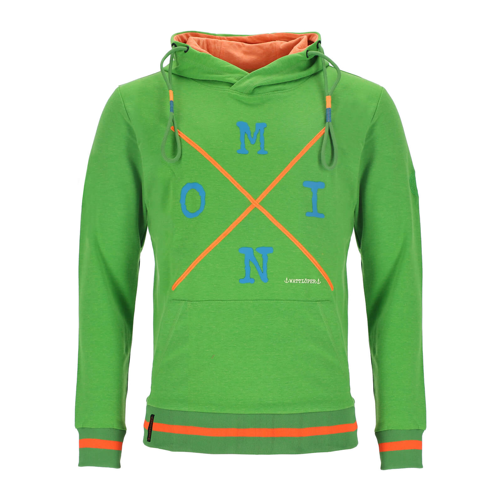 Wattlöper Herren Sweathoody mit Schriftzug "Moin" - Pullover mit Kapuze mit 3-farbigen Bändern in Apfelgrün Größe M