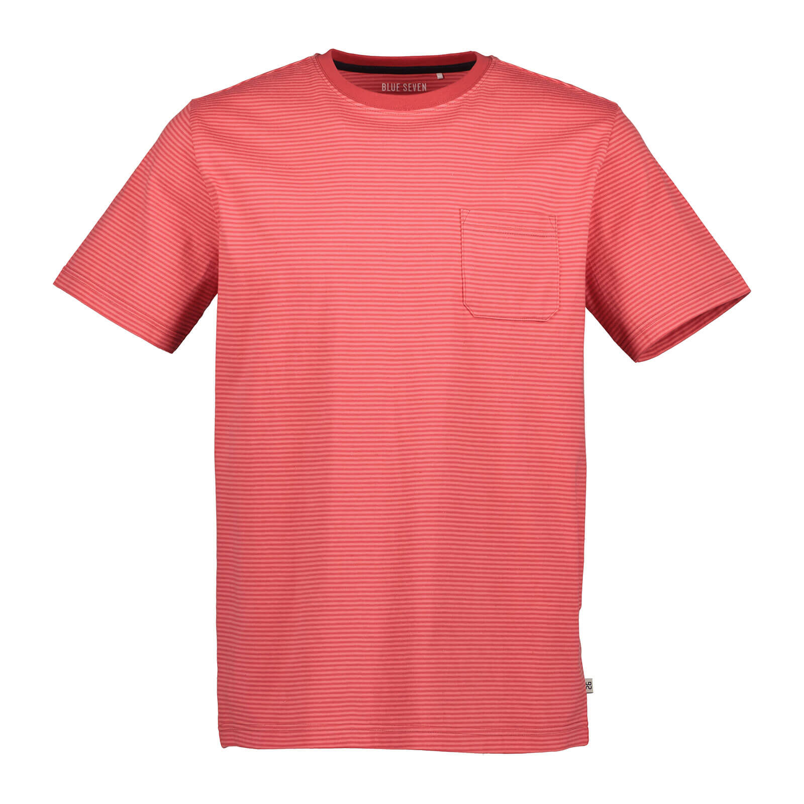 Blue Seven Herren T-Shirt im dezenten Streifen-Design - Kurzarm-Shirt mit Brusttasche in Hell Rot Größe M